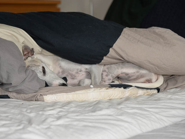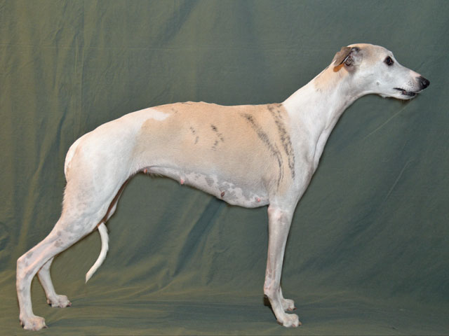 2018-12-06 Chanel 7 veckor efter parning Chanels mage växer med blixtens hast just nu. Hon har verkligen blivit stor den senaste veckan. Hon har gått upp 1,1 kg denna vecka och har nu totalt gått upp 3,4 kg. Detta är 500 g mera än förra gången, då hon fick 7 valpar – så vår gissning är att det finns 8 valpar. Vad som kanske inte syns på bilden är, att hon har blivit mycket bred över ryggen samtidig som magen nu är helt rak nedåt. Chanel mår bra och är pigg och hänger med på alla promenader, som dock inte längre är helt så långa, som vi brukar gå. På grund av att valparna nu tar så mycket plats, behöver hon också gå ut ett antal gånger under natten. Första gång vi kände liv var söndag kväll – det är alltid så stort att känna valparna.
