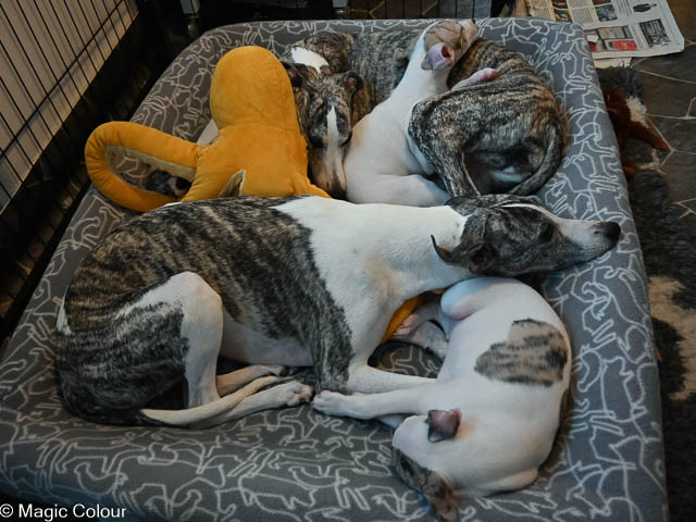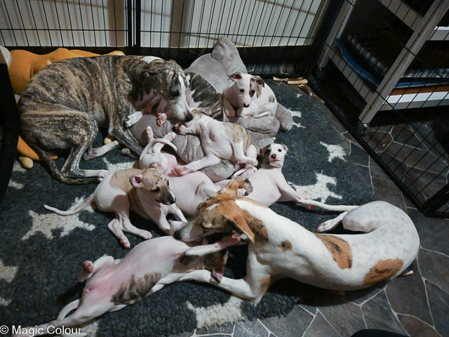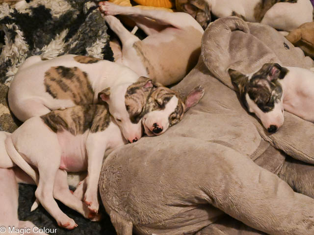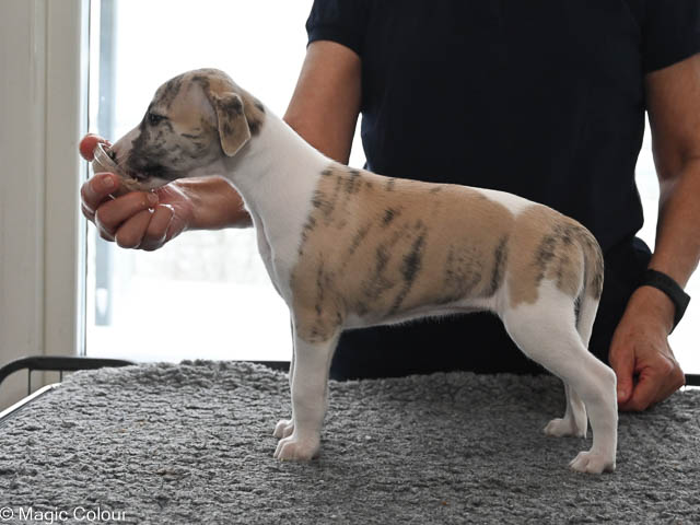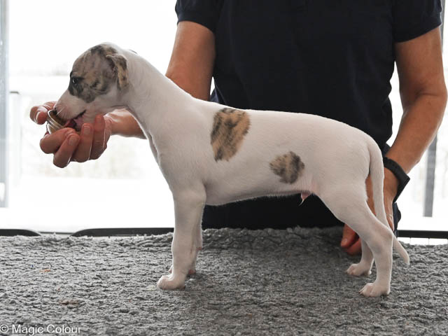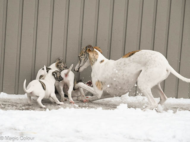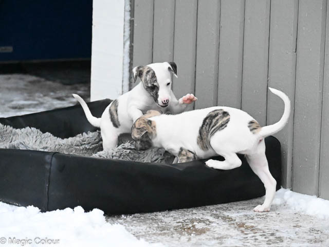 2026-01-04 Love & Bellas valpar 6 veckor Vart tar tiden i väg? Valparna redan 6 veckor och de utvecklas så fint. Valparna har haft besök av pappa Love med familj. Alla valparna är glada och positive och mycket framåt. De är helt orädda för allt nytt vi presenterar för dem. Valparna är nu utomhus varje gång de är vakna och är nu vildare, det bits och det springs fort. Vi har fått mycket snö och det tog de med en klackspark. Kennelhusse har gjort fina gånger i snön på altanen till valparna, vilket de tycker är ett hit – de gillar även den långa agilitytunnel. Flera av valparna har nu börjat få whippetöron och nu ser de ut som riktiga små whippetar. Magic Colour Higher Love (Sonny) Magic Colour Let Me Love You (Ludde) Magic Colour The Power Of Love (Fahéj) Magic Colour Crazy Love (Neville) Magic Colour True Love (Doris) Magic Colour Tainted Love (Tik 2) Magic Colour Love Of My Life (Tik 3) Magic Colour Love Story (Tik 4)