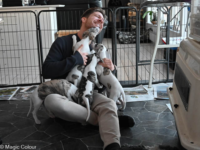 2026-01-18 De första valparna flyttar ”Fahéj” - Magic Colour The Power Of Love är den första valpen att flytta till sin nya familj. Fahèj flyttar hem till Petra och Sándor i Täby. Nästa som flyttar ”Ludde” – Magic Colour Let Me Love You. Skrutten flyttar hem till Katja och Walenty och hundkompisen Chilli i Borås. Tredje valpen som flyttar idag är ”Doris” - Magic Colour True Love. Doris flyttar hem till Anton och Tim i Köping. Vi önskar alla lycka till med era valpar och ser fram emot att få många hälsningar och bilder i vår kennel FB-grupp. Magic Colour The Power Of Love (Fahéj) Magic Colour Let Me Love You (Ludde) Magic Colour True Love (Doris)