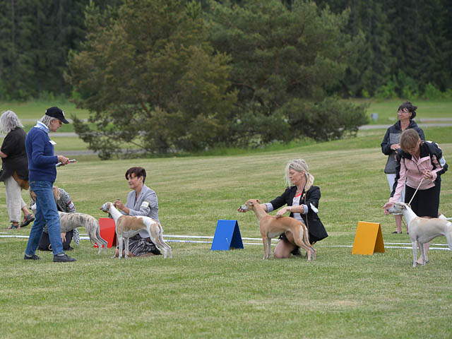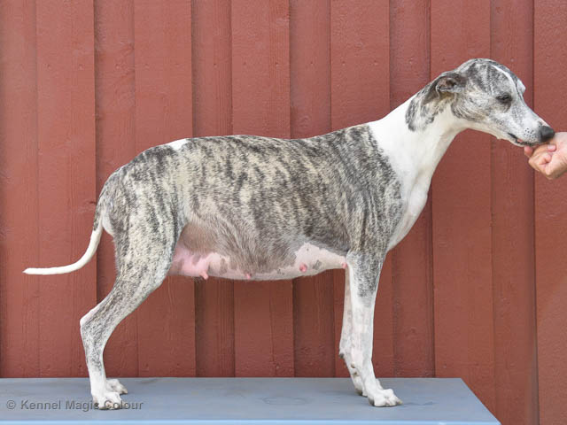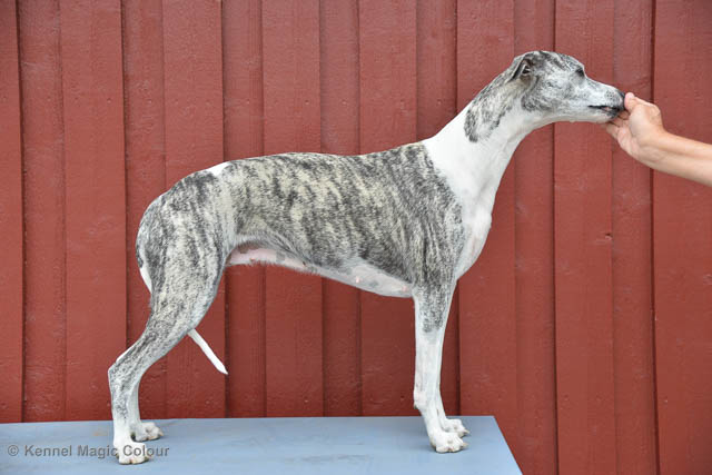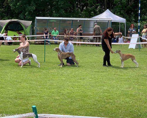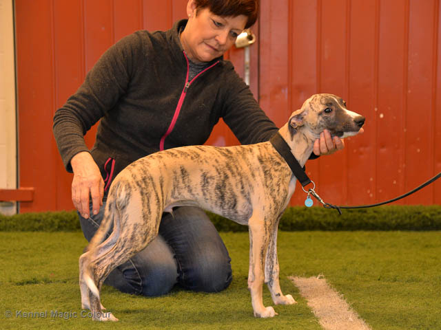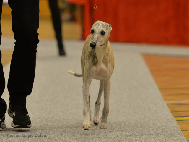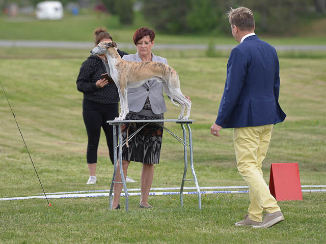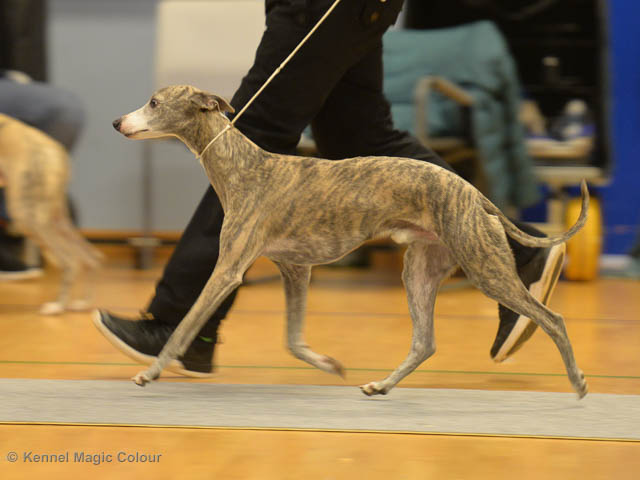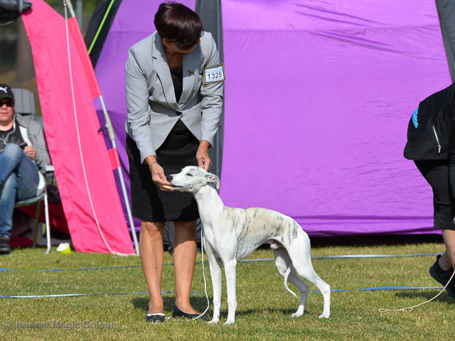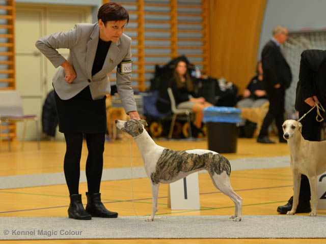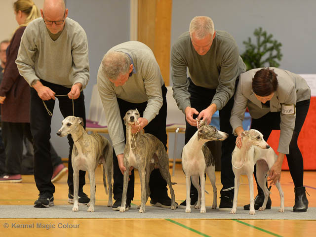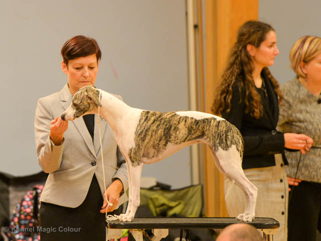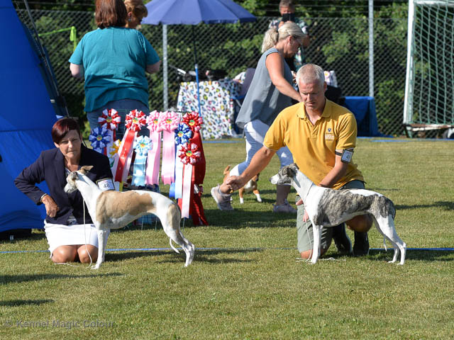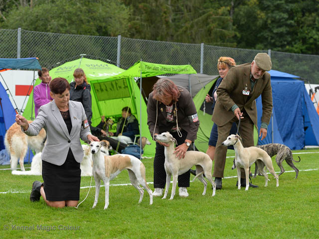 2019-06-09 NDS i Märsta Idag har vi varit på SKK:s utställning i Märsta. Totalt var det anmäld 33 whippets och domare var Jussi Liimatainen från Finland. Fån MC deltog Cosmo - Magic Colour Sporting Streak, Viking – KLBJCH Magic Colour Captain Tyler, Imse – SECH Magic Colour Cyber Cowboy, Candy – DKJUCH KLBJCH Magic Colour Sugar Candy, Scarlet – Magic Colour Scarlet Tyler, Indi – Magic Colour Lightning Streak och Chanel – SECH DKCH KLBCH Magic Colour Cosmo Chanel. Chanel debutera med sin avelsklass bestående av Viking, Scarlet, Cosmo och Indi. Vi blir BIR avelsklass med HP och slutar som BIS3 avelsklass Vi blir också BIR Uppfödargrupp med HP utav tre uppfödargrupper. Vår grupp bestod av 4 kombinationer Imse, Cosmo, Scarlet och Candy. Som alltid hade vi det trevlig. Vädret var soligt och mycket blåsande under bedömning. Då vi skulle till förbedömning i finalen började det att regna och alla blev mycket blöta. Solen kom tillbaka då vi var i finalen. Stort tack till er alla som så tappert stod ut med det dåliga vädret. Det betyder mycket för oss att få möjlighet att visa så fina grupper. Deltagande hundars resultatMagic Colour Sugar Candy (Candy) EXC-2 CQMagic Colour Captain Tyler (Viking) EXC-2Magic Colour Cyber Cowboy (Imse) EXC-2 CQMagic Colour Scarlet Tyler (Scarlet) EXC-2 CQMagic Colour Lightning Streak (Indi) VG-4Magic Colour Sporting Streak (Cosmo) EXC-2Avelsgrupp/Progeny group BIR BIS-2Uppfödergrupp/Breeder group BIR Team Magic Colour Cosmo Viking Imse Indi Candy Scarlet