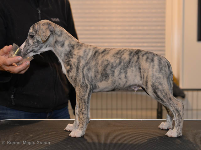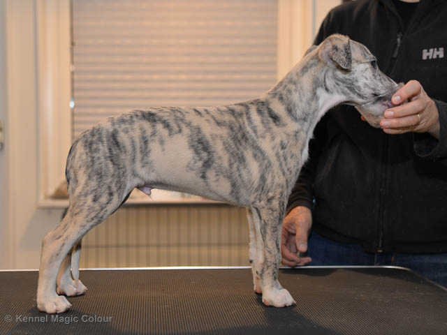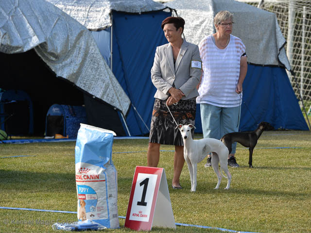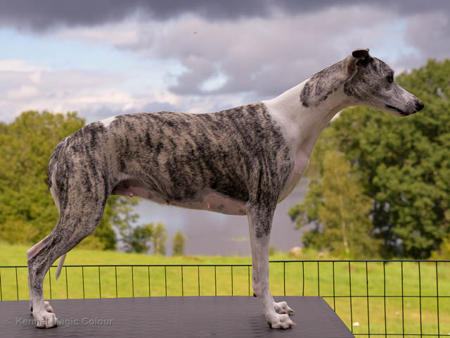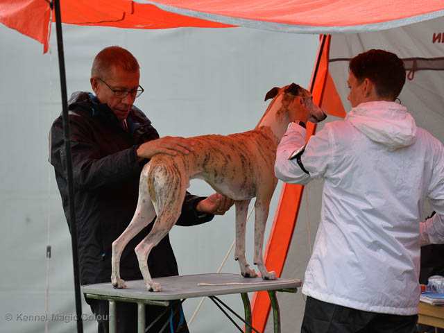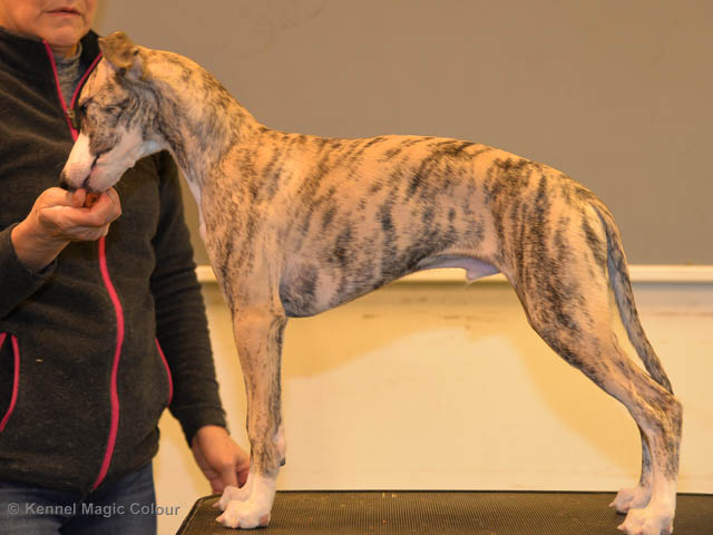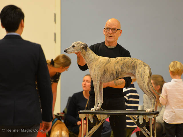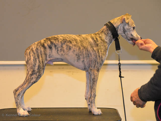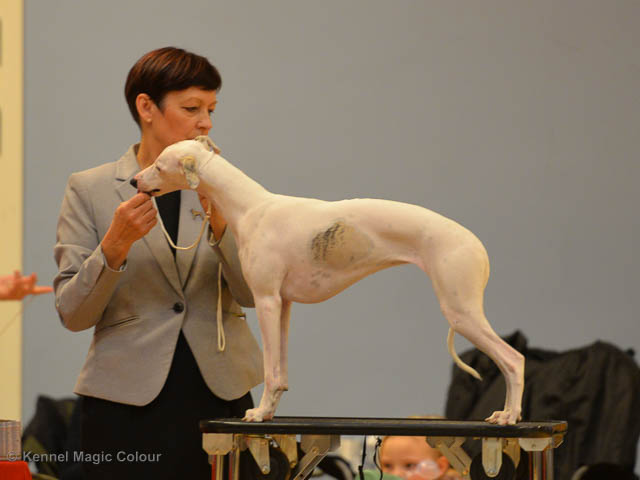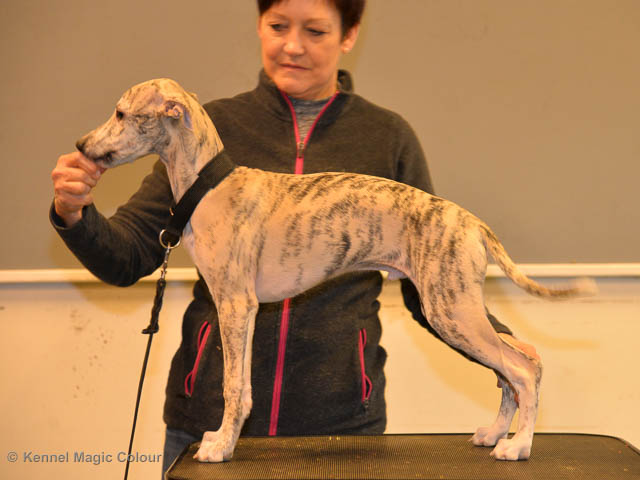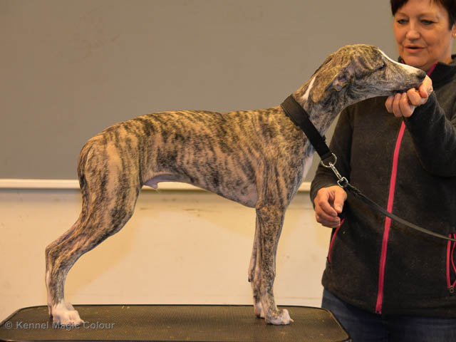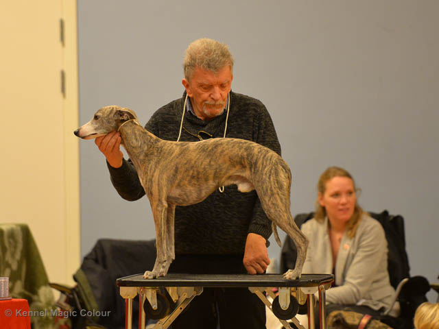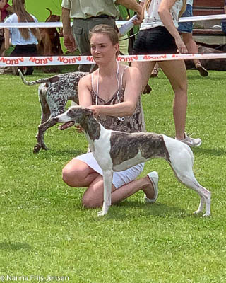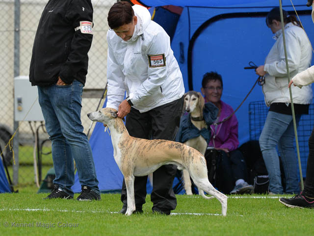 2019-06-09 NDS i Märsta Idag har vi varit på SKK:s utställning i Märsta. Totalt var det anmäld 33 whippets och domare var Jussi Liimatainen från Finland. Fån MC deltog Cosmo - Magic Colour Sporting Streak, Viking – KLBJCH Magic Colour Captain Tyler, Imse – SECH Magic Colour Cyber Cowboy, Candy – DKJUCH KLBJCH Magic Colour Sugar Candy, Scarlet – Magic Colour Scarlet Tyler, Indi – Magic Colour Lightning Streak och Chanel – SECH DKCH KLBCH Magic Colour Cosmo Chanel. Chanel debutera med sin avelsklass bestående av Viking, Scarlet, Cosmo och Indi. Vi blir BIR avelsklass med HP och slutar som BIS3 avelsklass Vi blir också BIR Uppfödargrupp med HP utav tre uppfödargrupper. Vår grupp bestod av 4 kombinationer Imse, Cosmo, Scarlet och Candy. Som alltid hade vi det trevlig. Vädret var soligt och mycket blåsande under bedömning. Då vi skulle till förbedömning i finalen började det att regna och alla blev mycket blöta. Solen kom tillbaka då vi var i finalen. Stort tack till er alla som så tappert stod ut med det dåliga vädret. Det betyder mycket för oss att få möjlighet att visa så fina grupper. Deltagande hundars resultatMagic Colour Sugar Candy (Candy) EXC-2 CQMagic Colour Captain Tyler (Viking) EXC-2Magic Colour Cyber Cowboy (Imse) EXC-2 CQMagic Colour Scarlet Tyler (Scarlet) EXC-2 CQMagic Colour Lightning Streak (Indi) VG-4Magic Colour Sporting Streak (Cosmo) EXC-2Avelsgrupp/Progeny group BIR BIS-2Uppfödergrupp/Breeder group BIR Team Magic Colour Cosmo Viking Imse Indi Candy Scarlet