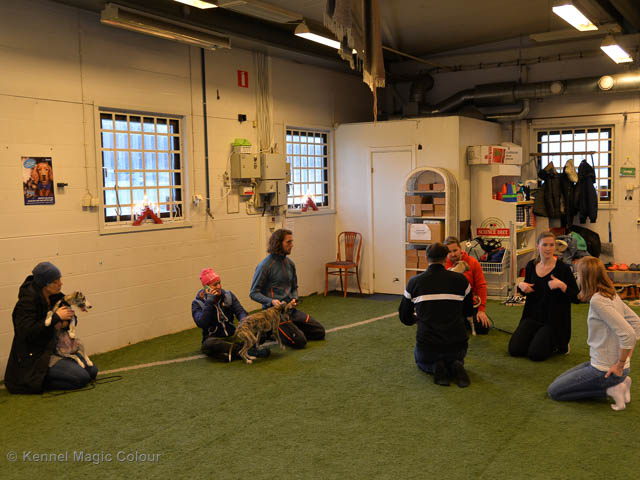 2019-12-27 Valpträff Idag har vi haft valpträff i Sea Star-kullen och två valpar från Sail-kullen. De som deltog var Moltas (Magic Colour Sea Star On The Line), Hugo (Magic Colour Sea Star Moody Blues), Floyd (Magic Colour sea Star No Regrets), Lotus (Magic Colour Sea Star Jet Skye), Kosmo ( Magic Colour Sea Star Deep Love), Pippi (Magic Colour Sail By The Stars) och Bella ( Magic Colour Blond Sail). Vi började med lite ringträning inne i hallen. Sedan var det fotografering, vägning och mätning av alla. Och vi kunna konstatera att alla i Sea kullen fortfarande växer jämt. Därnäst fick killarna och tjejerna springa varje för sig ute i den stora inhägnade hage på Södertälje Lokala Kennelklubb. Vi avslutade träffen med glögg och kaffe och fika för de tvåbenade. När vi fikade fortsatta valparna att leka och ha kul. Tusen tack för att ni alla kom – det är så roligt för oss att kunna följa valparna. Moltas