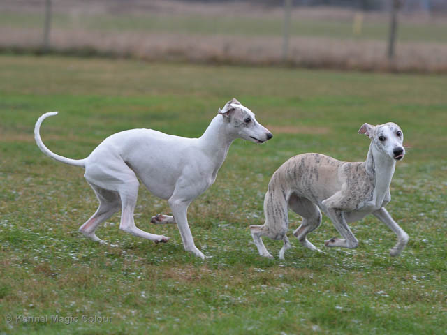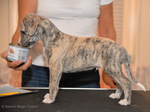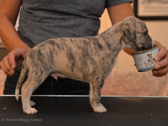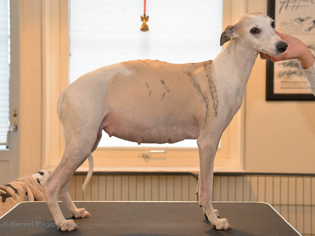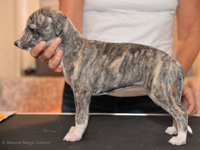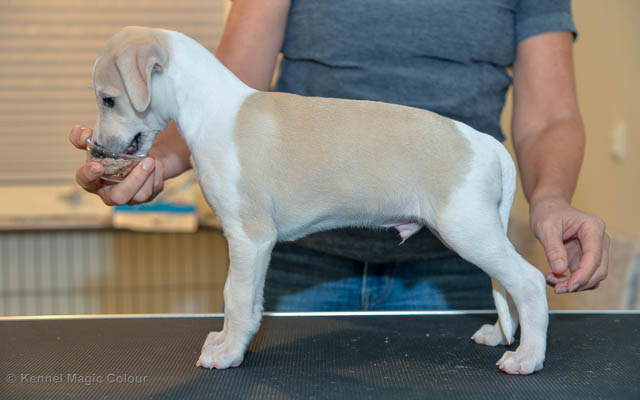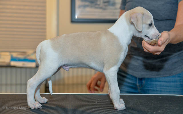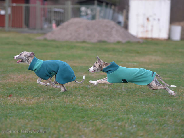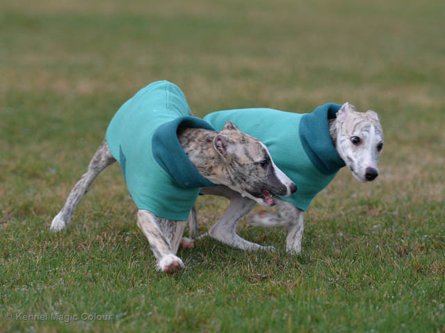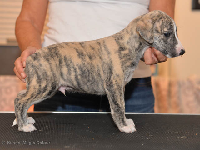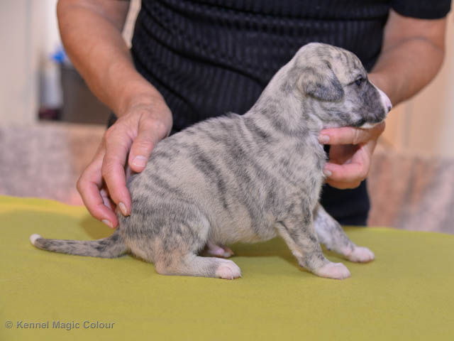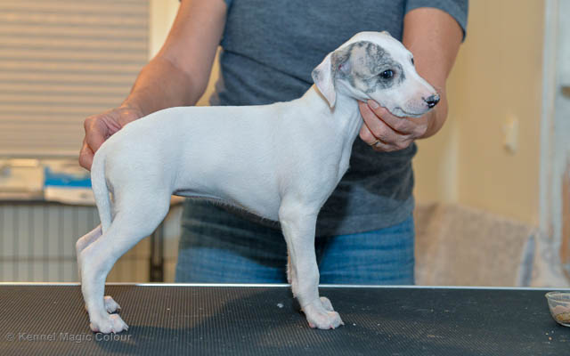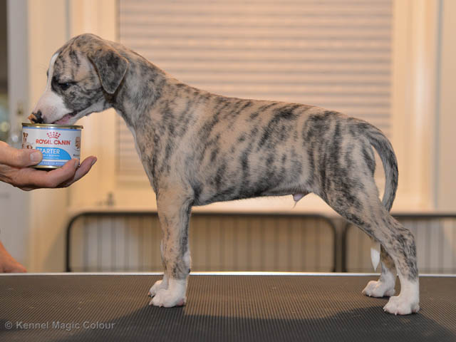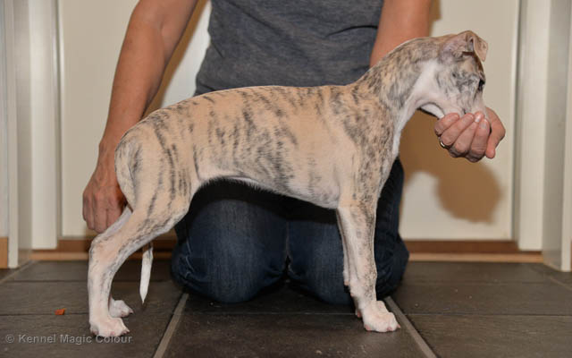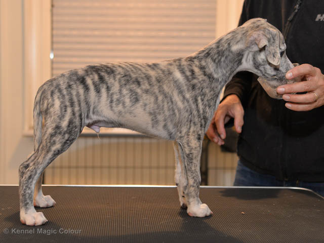 2019-01-21 Valparna 5 veckor gamla Nu är det riktigt små mini-whippets som springer runt i valphagen. De börjar bli hyfsat stabila och kan röra sig med ganska hög fart. Deras ögon är inte färdigutvecklat, så de springer ju ibland in i ting som är i deras väg. Maten är nu till stor del hundfoder och mjölkbaren är endast öppen korta stunder. Det är tydligt det gör ont på mamma Chanel när de diar, men hon gillar fortfarande att ligga tillsammans med de små. De är inne i en period med ”höjdskräck”, så det är inte helt lätt att fota dem – bilderna på dem gör det inte helt rättvisa… Magic Colour North Sail (Kenzo) Magic Colour Latin Sail (Josh) Magic Colour Sail For Gold (Kirin) Magic Colour White Sail (Kenny) Magic Colour Sail By The Stars (Pippi) Magic Colour Blond Sail (Bella)