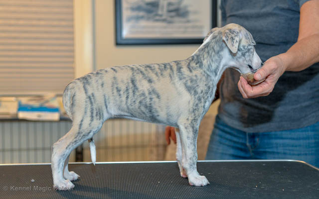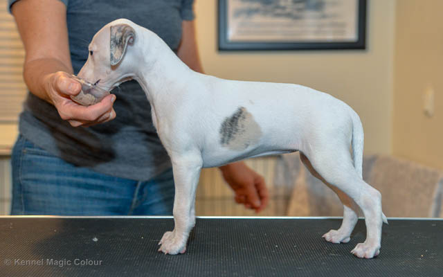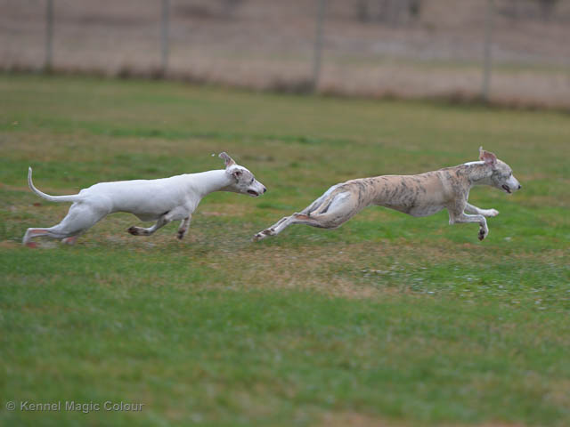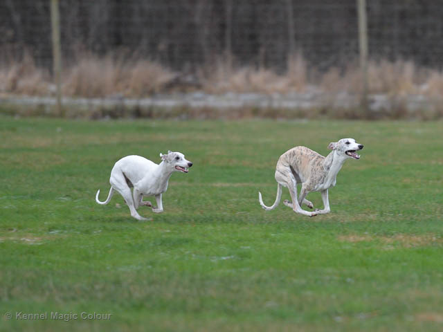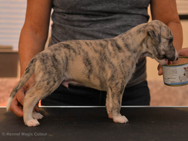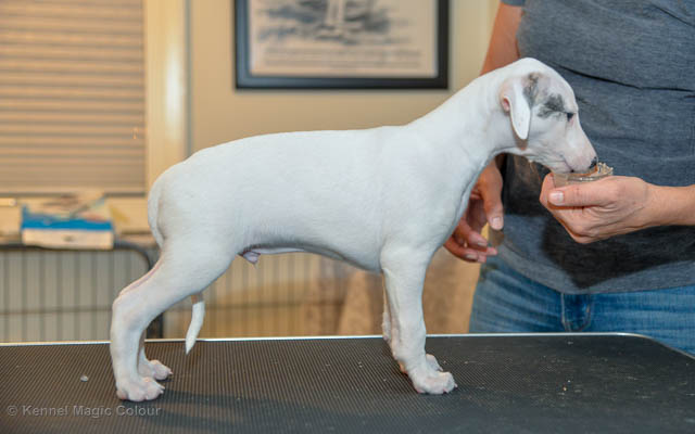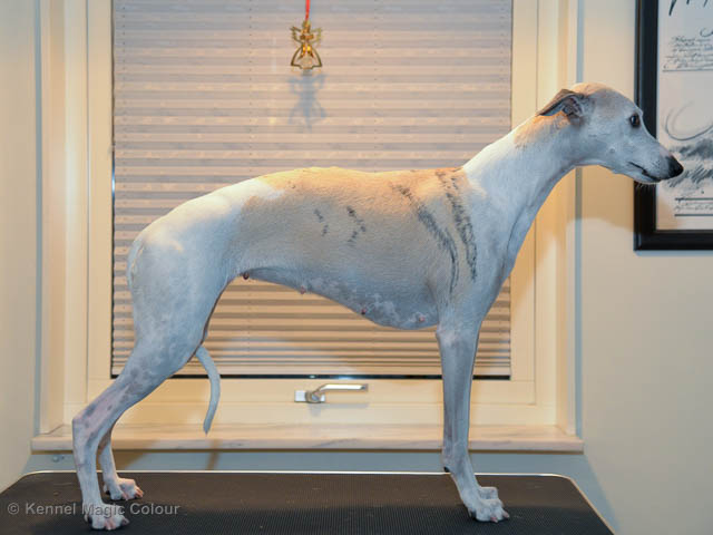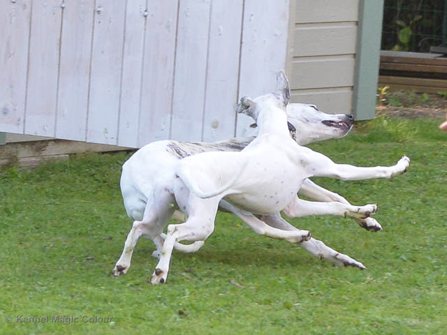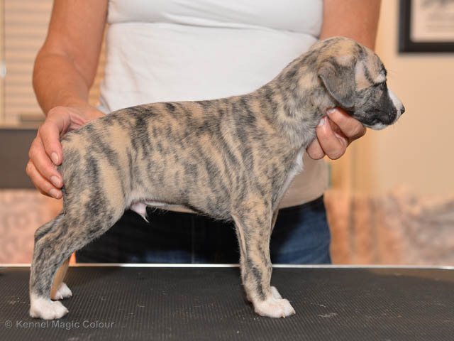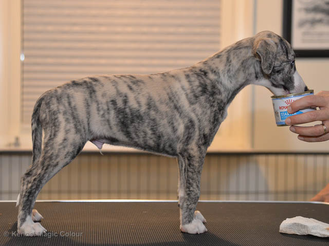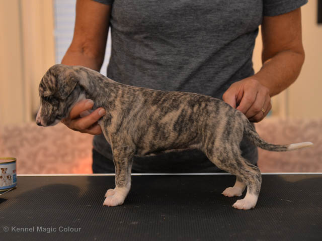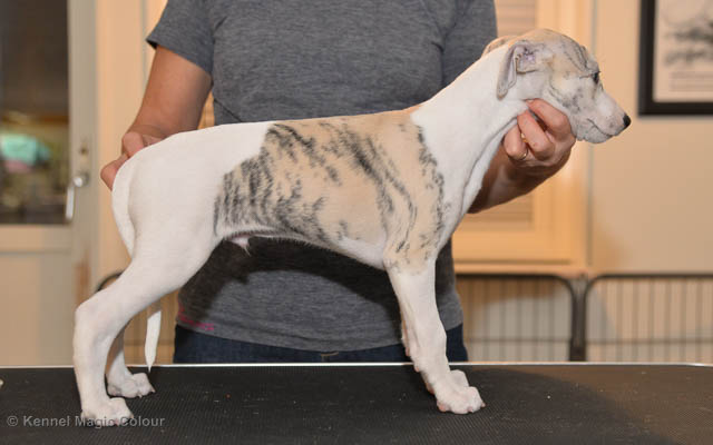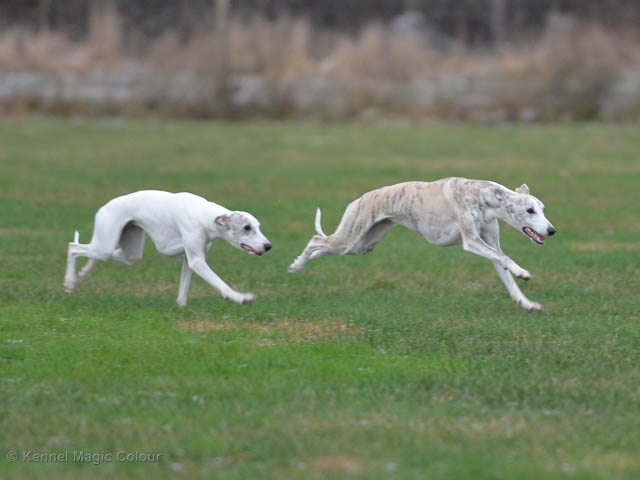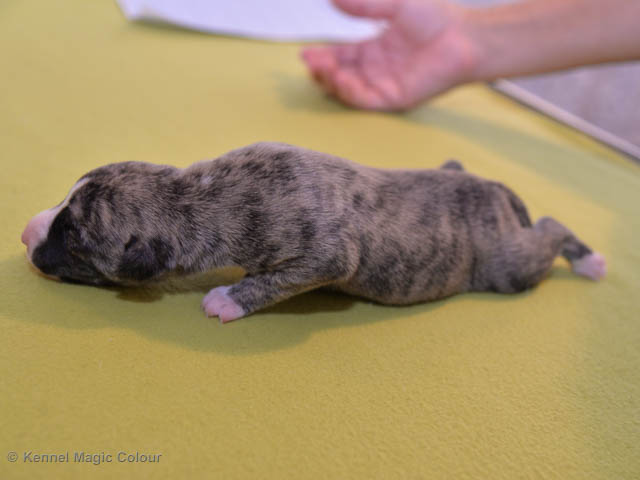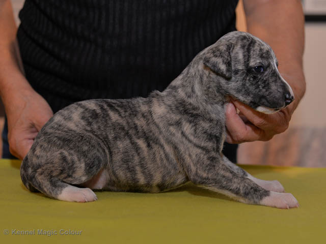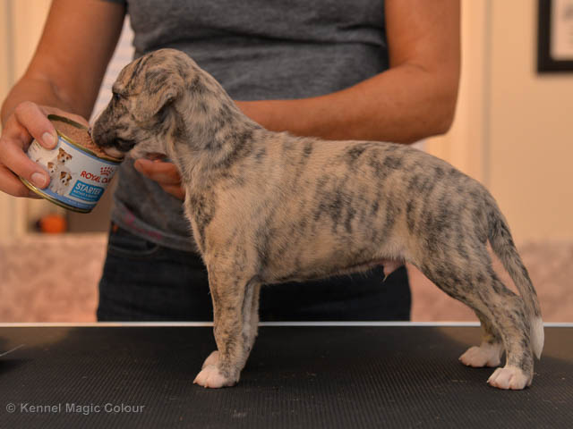 2019-01-21 Valparna 5 veckor gamla Nu är det riktigt små mini-whippets som springer runt i valphagen. De börjar bli hyfsat stabila och kan röra sig med ganska hög fart. Deras ögon är inte färdigutvecklat, så de springer ju ibland in i ting som är i deras väg. Maten är nu till stor del hundfoder och mjölkbaren är endast öppen korta stunder. Det är tydligt det gör ont på mamma Chanel när de diar, men hon gillar fortfarande att ligga tillsammans med de små. De är inne i en period med ”höjdskräck”, så det är inte helt lätt att fota dem – bilderna på dem gör det inte helt rättvisa… Magic Colour North Sail (Kenzo) Magic Colour Latin Sail (Josh) Magic Colour Sail For Gold (Kirin) Magic Colour White Sail (Kenny) Magic Colour Sail By The Stars (Pippi) Magic Colour Blond Sail (Bella)