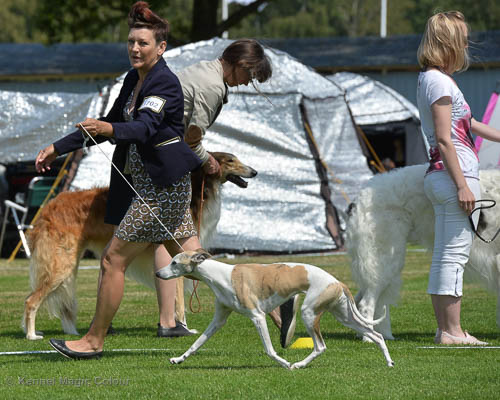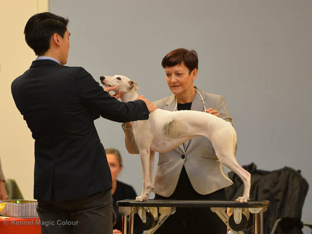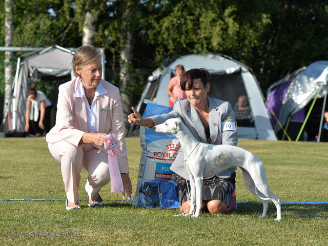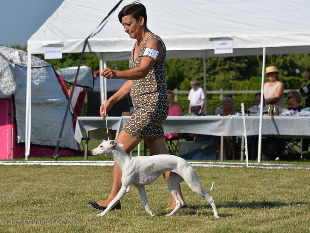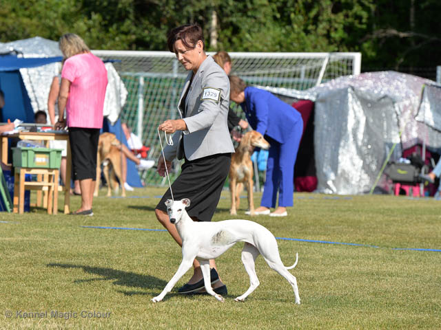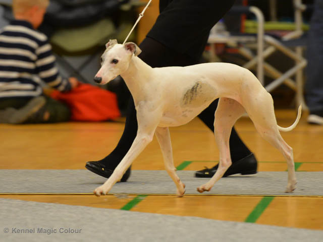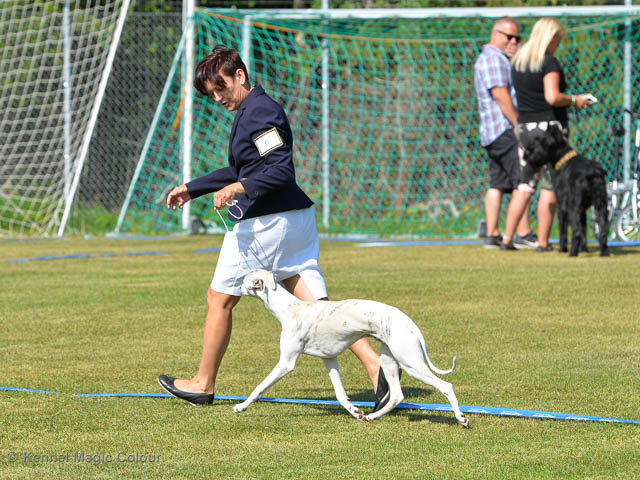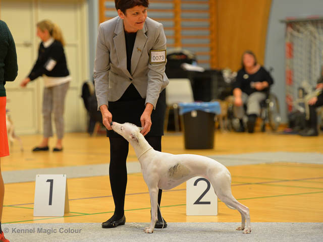 2019-08-02 Tre-dagars utställning i Svenstavik 2019-08-02 Svenska Whippetklubbens inofficiella utställning På Svenska Whippetklubbens inofficiella utställning i Svenstavik var det totalt anmäld 52 whippet och domare var Maria Gustafsson, kennel Nemaz Problemaz. 2019-08-03 SvVK/Norra officiella utställning På Vinthundsklubbens utställng var det anmäld 63 whippet och domare var Barbara Ruth Smith, kennel I’m Blueskies 2019-08-04 SKK:s Nordic Dog Show På kennelklubbens utställning var det anmäld 47 whippet och domare var Erin Brown från Australien. Denna domare var lite tuffare i sin bedömning för det var nästan flera VG än EXC och väldig få CK. Deltagande hundars resultatMagic Colour Sugar Candy (Candy) 1:EXC | 2:EXC-1 CQ BF-3 | 3:EXC-1 CQ BF-1CAC,Nordic-CAC BIR BIG-2Magic Colour Blond Sail (Bella) 1:HP-1 BIM | 2:HP-1 BIR BIS-1 | 3:HP-2Magic Colour Scarlet Tyler (Scarlet) 1:EXC-3 CQ | 2:EXC-3 CQ | 3:VGMagic Colour Latin Sail (Josh) 1:EXC3 | 2:HP-2 | 3:HP-2 Josh Bella Scarlet Candy Candy BG-2