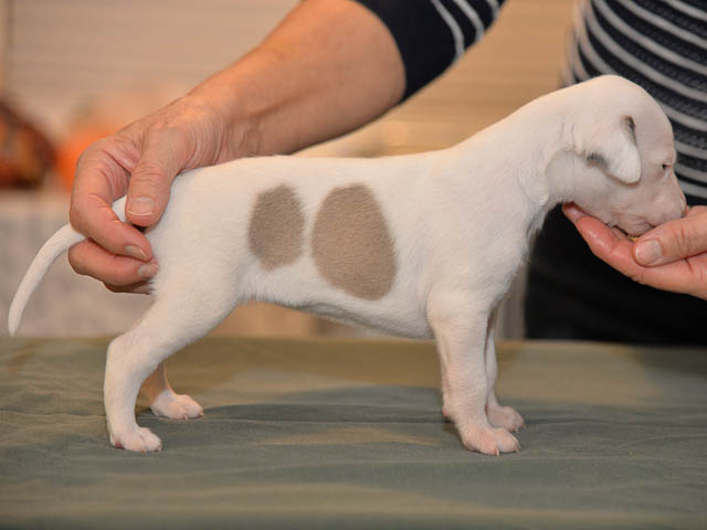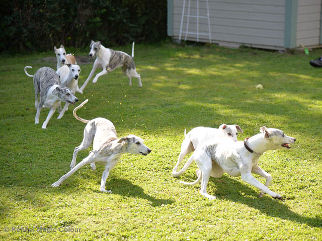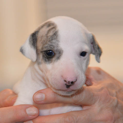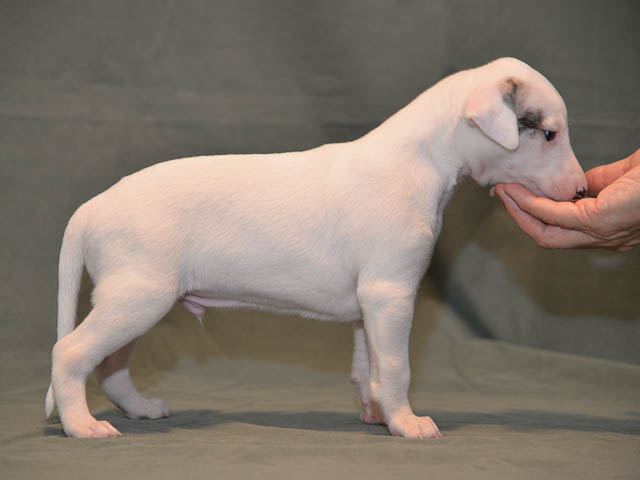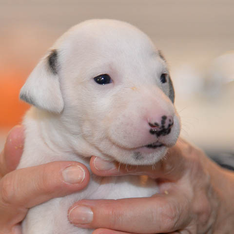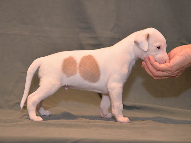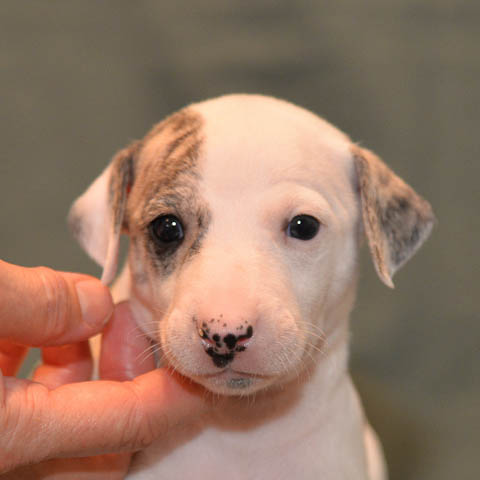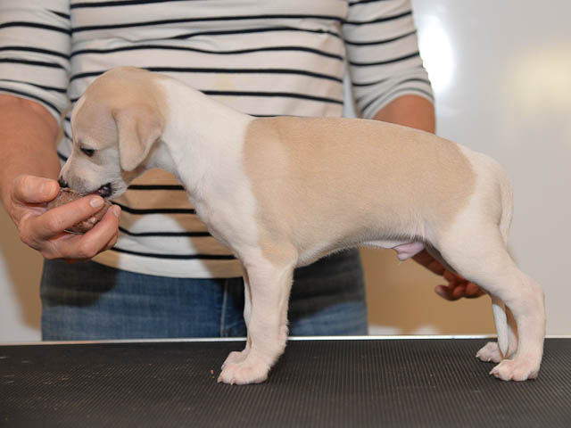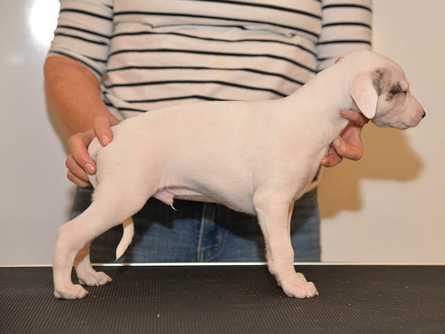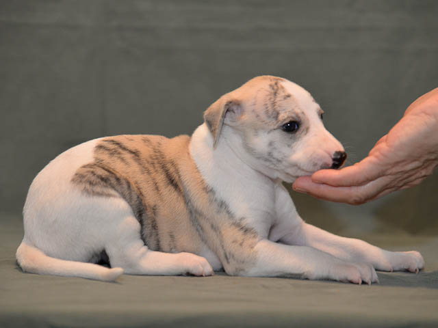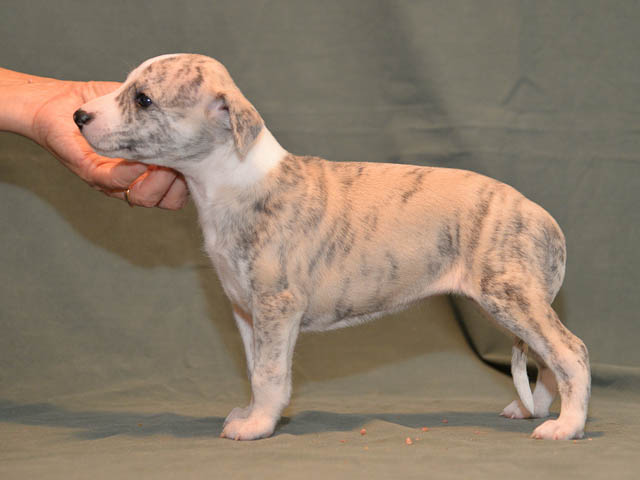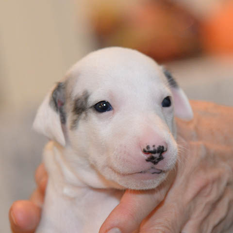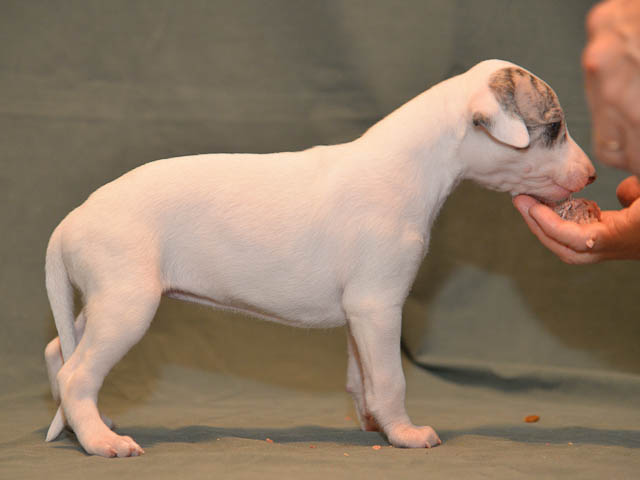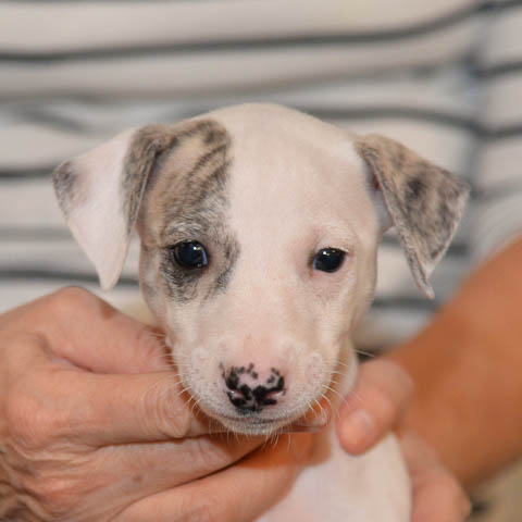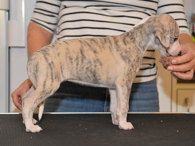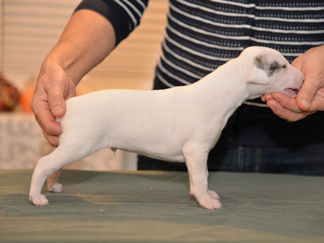 2019-10-15 Valparna 5 veckor gamla Fem veckor har gått och nu är det riktig små whippets som springer runt i valphagen. De både hör och ser bättra, och man kan nu inte längre smyga sig förbi dem utan att bli upptäck. Deras tänder är välutvecklat och sylvassa, vilket gör att mamma Sös nu inte längre vill dia dem – fast hon vill gärna vara tillsammans med dem. Under veckan har de varit utomhus ett antal gångar, och det tyckte de var roligt – att få springa lite längre sträcker var kul. De äter nu ”tort” valpfoder med en klick blöt-foder och har full koll på att själva dricka från vattenskålen. Lilla Bella (10 månader) börjar också bli favorit lek-tanten, och hon går gärna in i valphagen och ”fightas” lite med de små. Alla valpar och mamma Sös mår utmärkt. Magic Colour Sea Star Deep Love (Kosmo) Magic Colour Sea Star Dreamer (Harry) Magic Colour Sea Star High Noon (Elliot) Magic Colour Sea Star Jet Skye (Lotus) Magic Colour Sea Star Moody Blues (Hugo) Magic Colour Sea Star No Regrets (Floyd) Magic Colour Sea Star On The Line (Moltas) Magic Colour Sea Star So Sweet (Java)