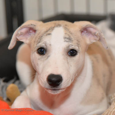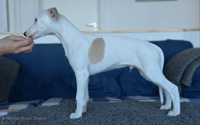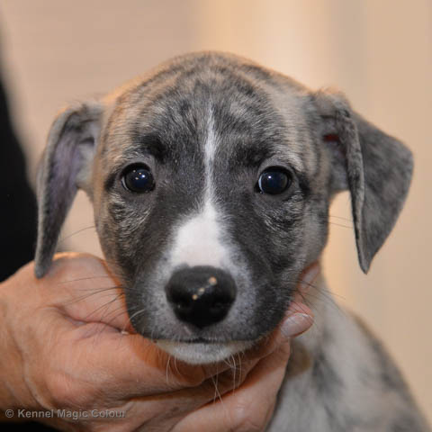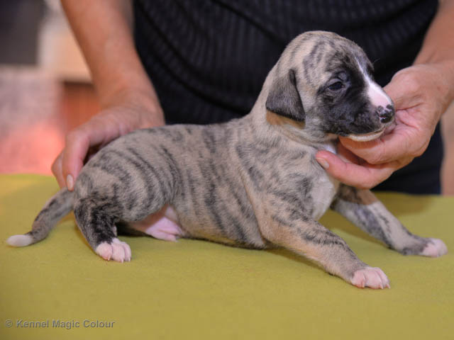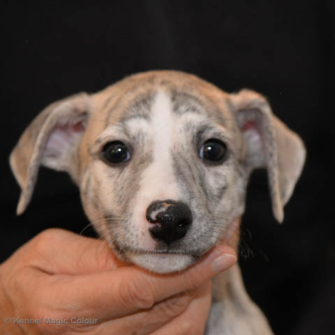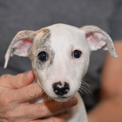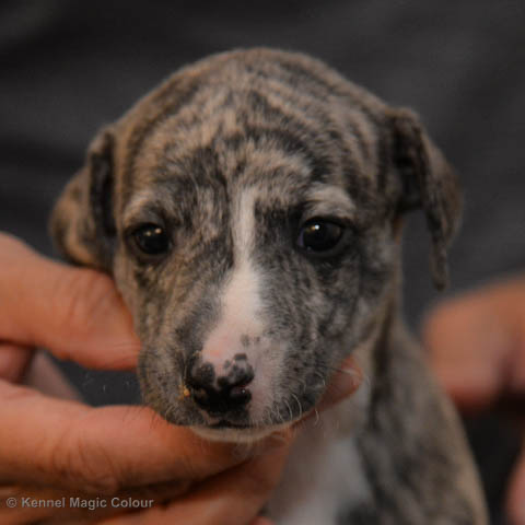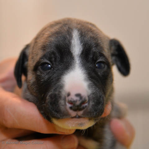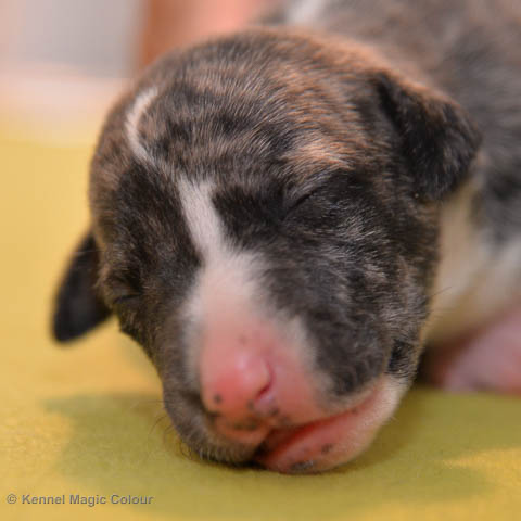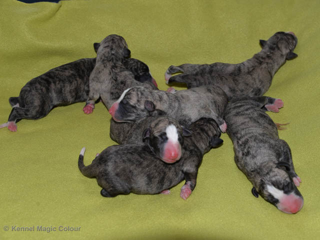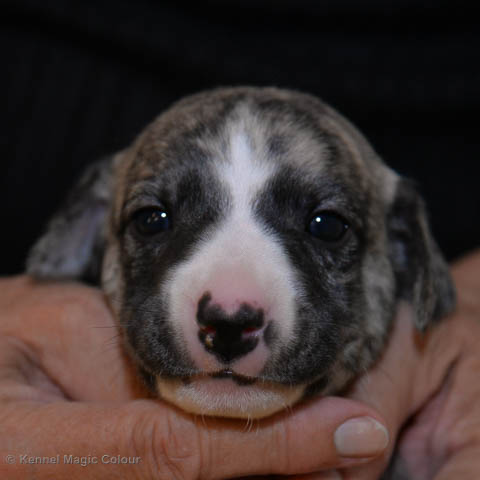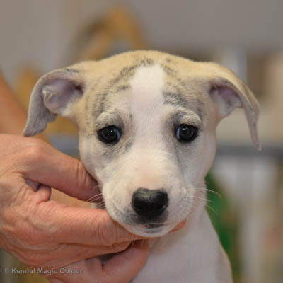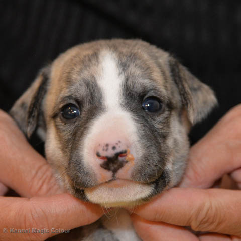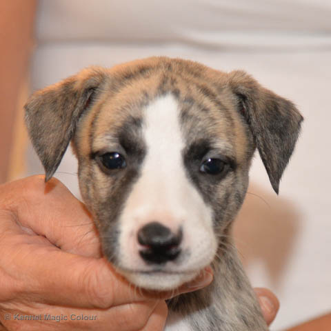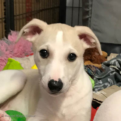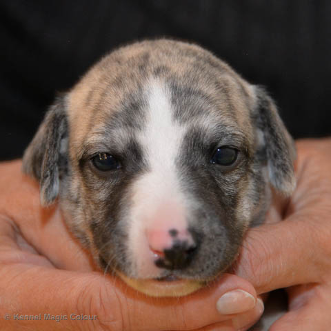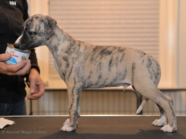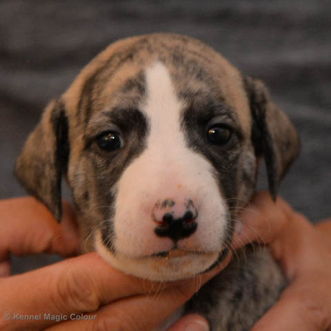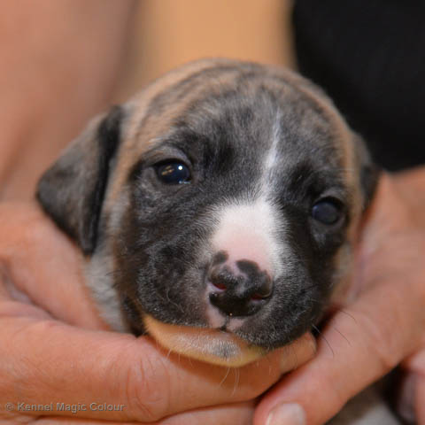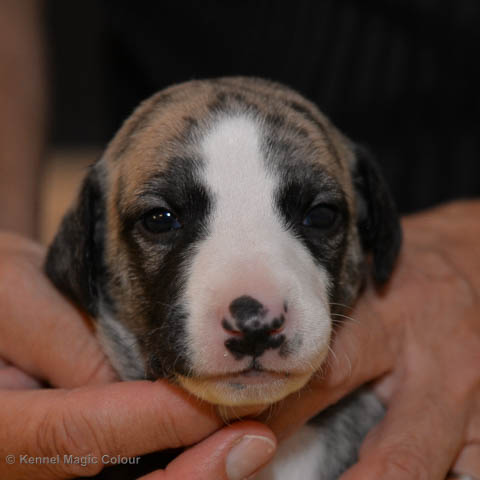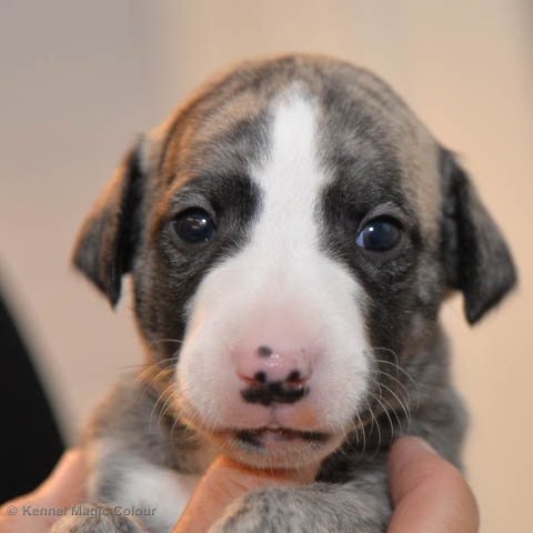 2019-01-07 Valparna 3 veckor gamla Nu händer det saker. Valparna börjar se ut som små whippetar. Under veckan som har gått, har valparna blivit avmaskat för första gången. Alla har nu öppnat sina ögon och de kan höra. De är uppe på sina ben och har bytt ut valplådan mot en stor biabädd, så dem kan gå ut korgen själv. Valparna har börjat bita i och leka med varandra. Valparna är också mycket intresserade i mammas mat och har fått smaka på den, vilket Chanel inte är så förtjust i. Chanel är en fantastisk mamma, som verkligen älskar sina små barn och passar dem till punkt och pricka. Chanel tillåter numera de andra hundarna att komma in i valphagen och dörren är öppen hela tiden. Är så imponerat av alla valparna, som alla kunna stå hyfsat fint på uppställningsbilderna - endast tre veckor gamla. Med andra ord nu är valparna livsfarlig söta. Magic Colour North Sail (Kenzo) Magic Colour Latin Sail (Josh) Magic Colour Sail For Gold (Kirin) Magic Colour White Sail (Kenny) Magic Colour Sail By The Stars (Pippi) Magic Colour Blond Sail (Bella)
