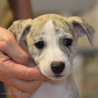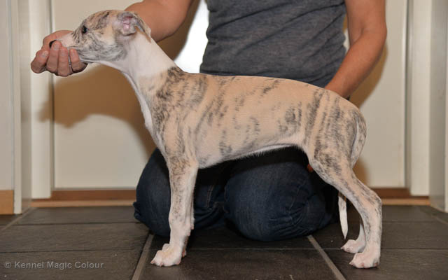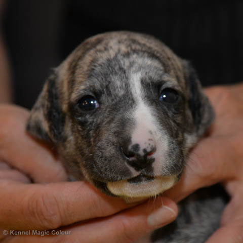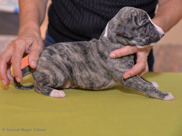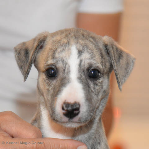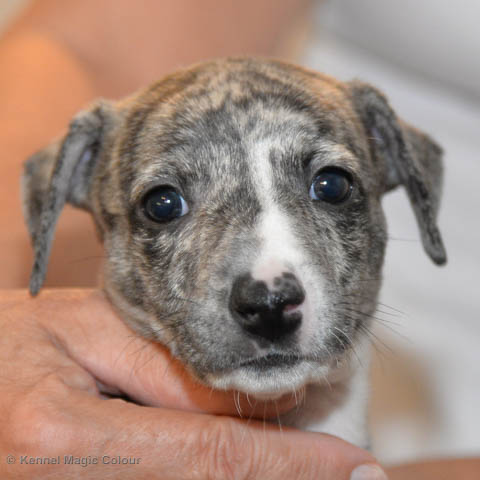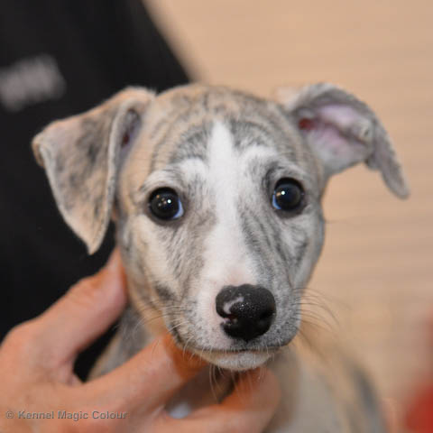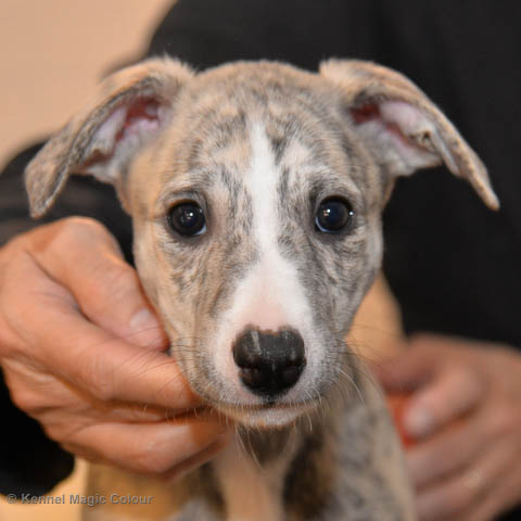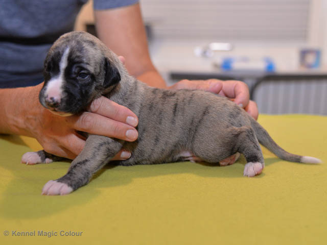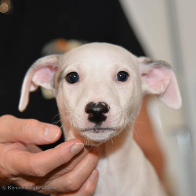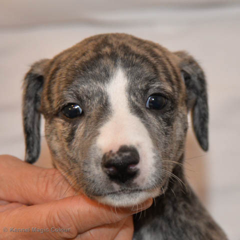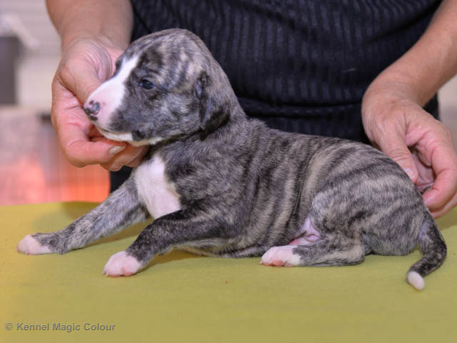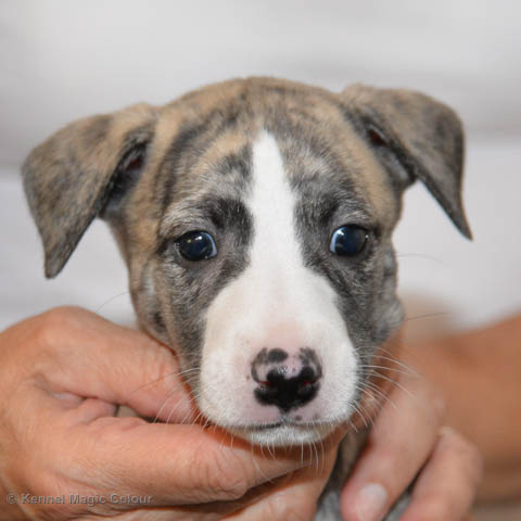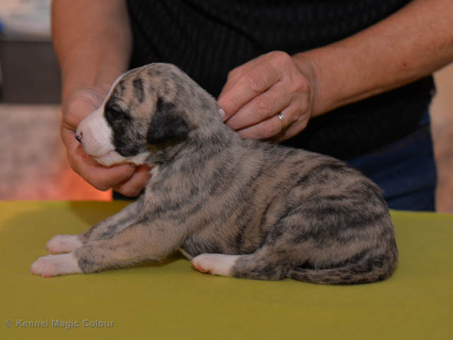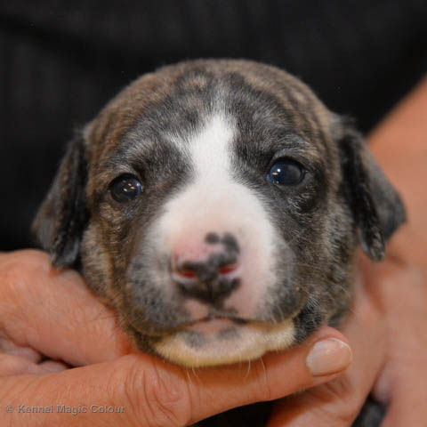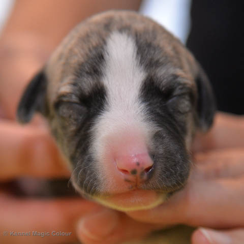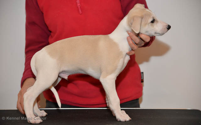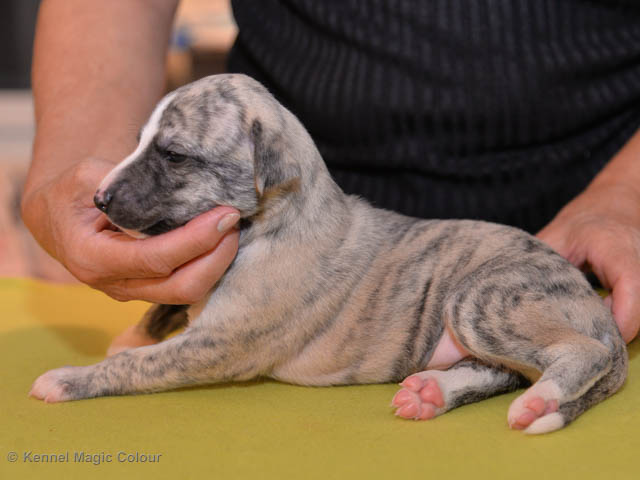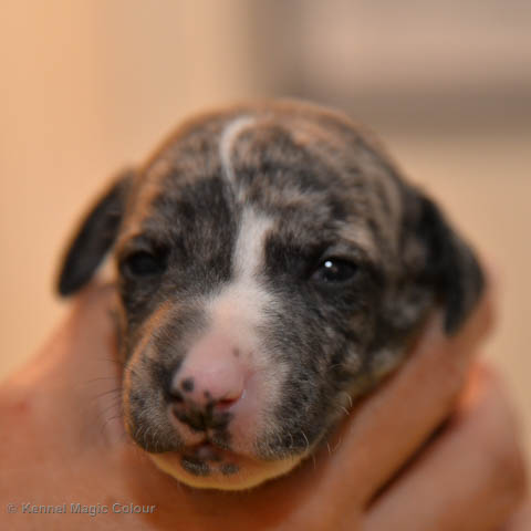 2019-01-07 Valparna 3 veckor gamla Nu händer det saker. Valparna börjar se ut som små whippetar. Under veckan som har gått, har valparna blivit avmaskat för första gången. Alla har nu öppnat sina ögon och de kan höra. De är uppe på sina ben och har bytt ut valplådan mot en stor biabädd, så dem kan gå ut korgen själv. Valparna har börjat bita i och leka med varandra. Valparna är också mycket intresserade i mammas mat och har fått smaka på den, vilket Chanel inte är så förtjust i. Chanel är en fantastisk mamma, som verkligen älskar sina små barn och passar dem till punkt och pricka. Chanel tillåter numera de andra hundarna att komma in i valphagen och dörren är öppen hela tiden. Är så imponerat av alla valparna, som alla kunna stå hyfsat fint på uppställningsbilderna - endast tre veckor gamla. Med andra ord nu är valparna livsfarlig söta. Magic Colour North Sail (Kenzo) Magic Colour Latin Sail (Josh) Magic Colour Sail For Gold (Kirin) Magic Colour White Sail (Kenny) Magic Colour Sail By The Stars (Pippi) Magic Colour Blond Sail (Bella)