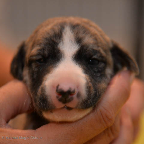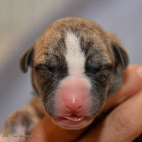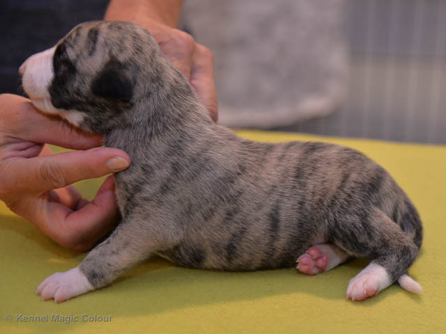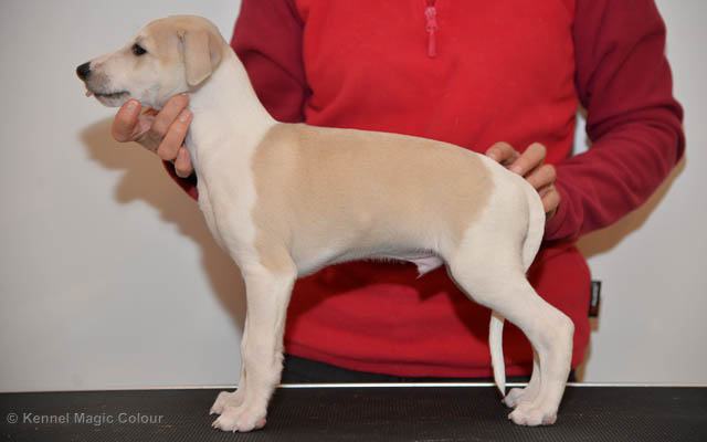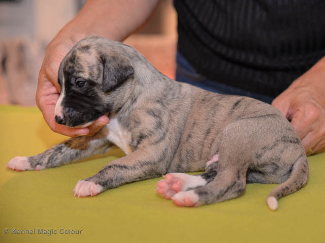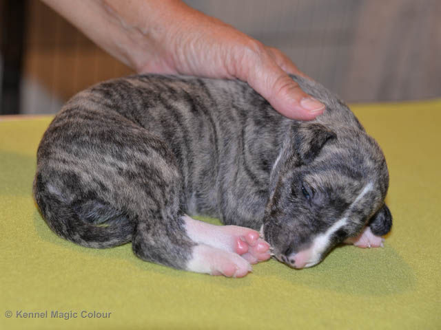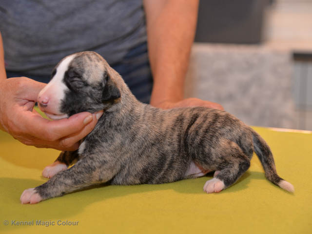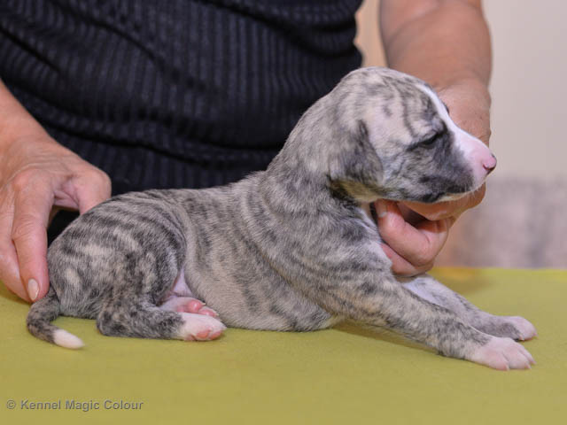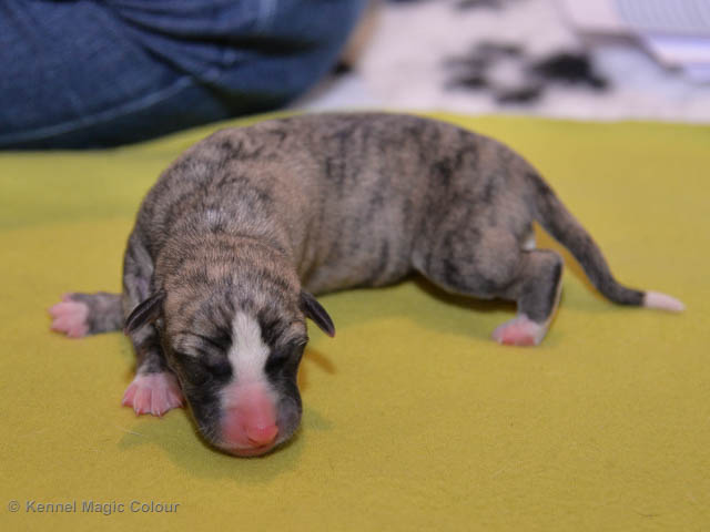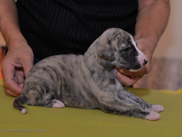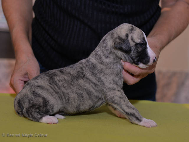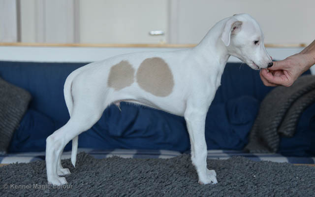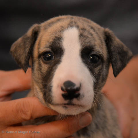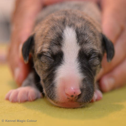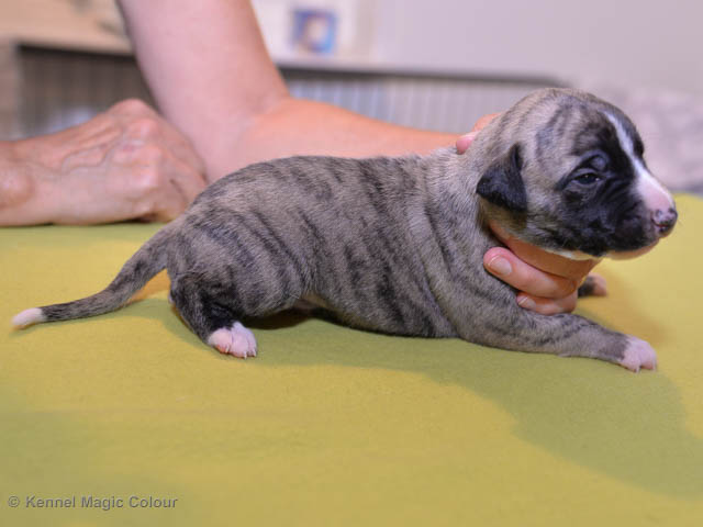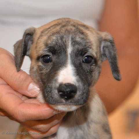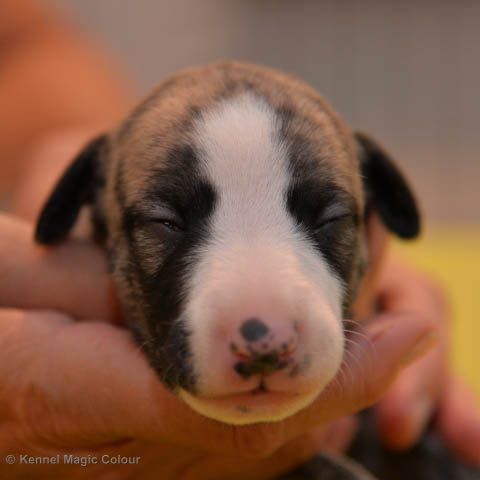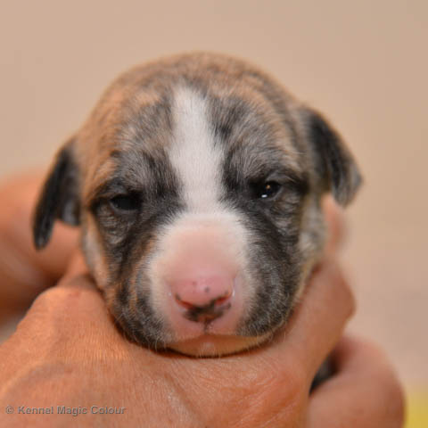 2019-01-07 Valparna 3 veckor gamla Nu händer det saker. Valparna börjar se ut som små whippetar. Under veckan som har gått, har valparna blivit avmaskat för första gången. Alla har nu öppnat sina ögon och de kan höra. De är uppe på sina ben och har bytt ut valplådan mot en stor biabädd, så dem kan gå ut korgen själv. Valparna har börjat bita i och leka med varandra. Valparna är också mycket intresserade i mammas mat och har fått smaka på den, vilket Chanel inte är så förtjust i. Chanel är en fantastisk mamma, som verkligen älskar sina små barn och passar dem till punkt och pricka. Chanel tillåter numera de andra hundarna att komma in i valphagen och dörren är öppen hela tiden. Är så imponerat av alla valparna, som alla kunna stå hyfsat fint på uppställningsbilderna - endast tre veckor gamla. Med andra ord nu är valparna livsfarlig söta. Magic Colour North Sail (Kenzo) Magic Colour Latin Sail (Josh) Magic Colour Sail For Gold (Kirin) Magic Colour White Sail (Kenny) Magic Colour Sail By The Stars (Pippi) Magic Colour Blond Sail (Bella)