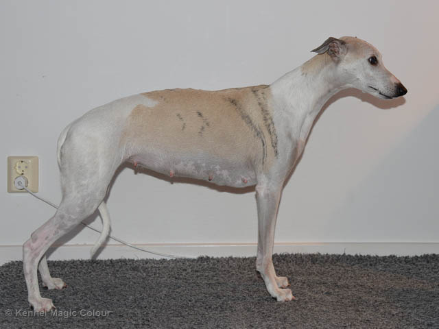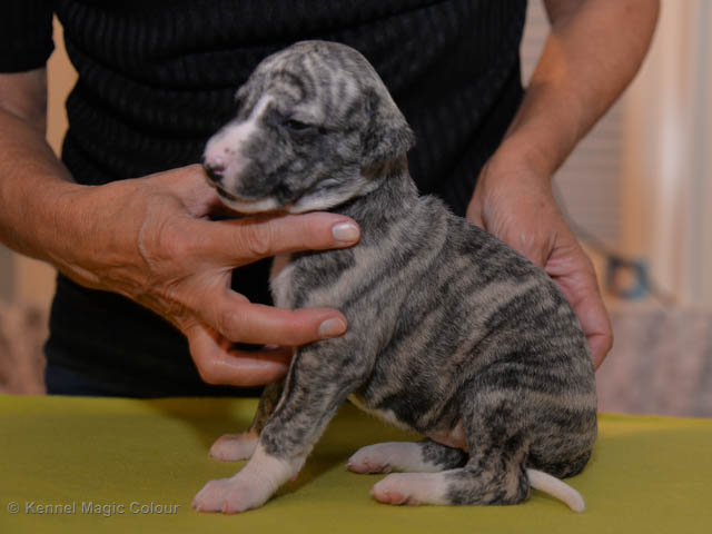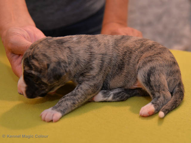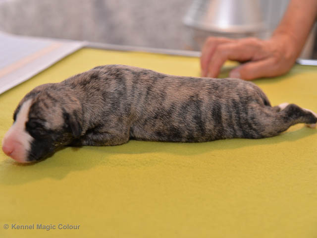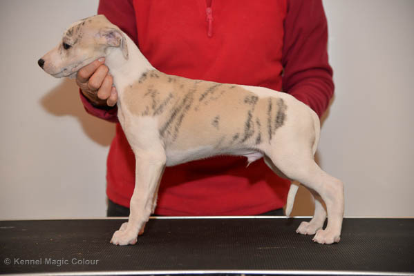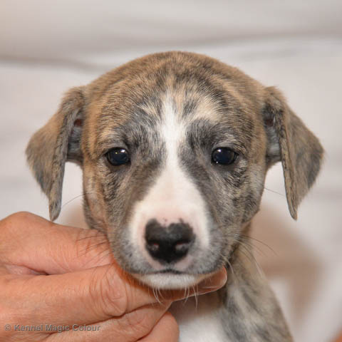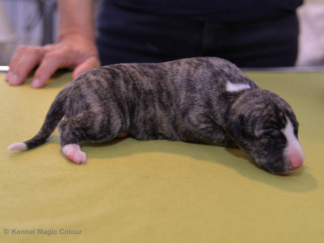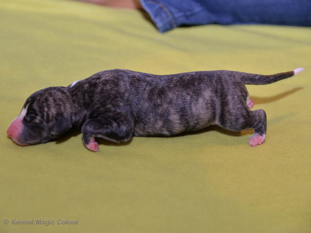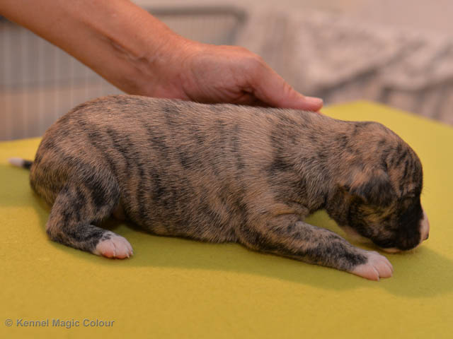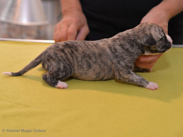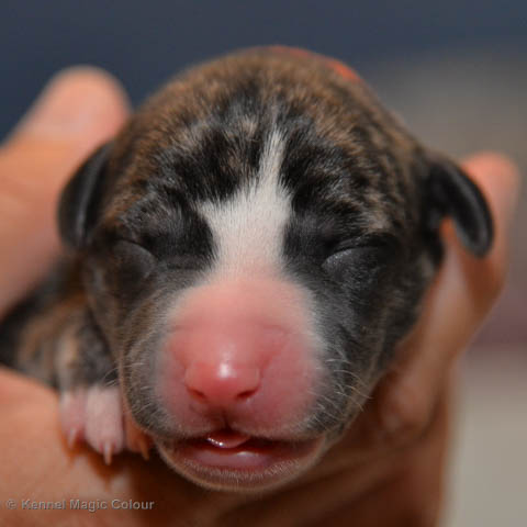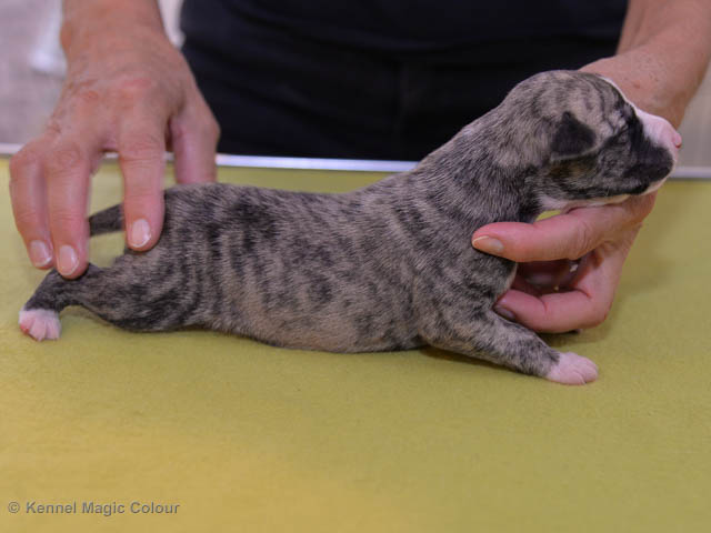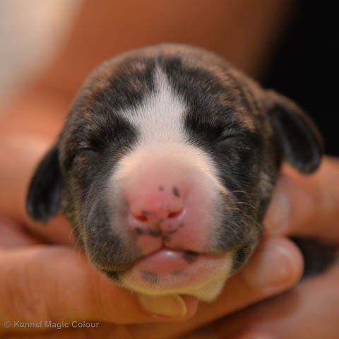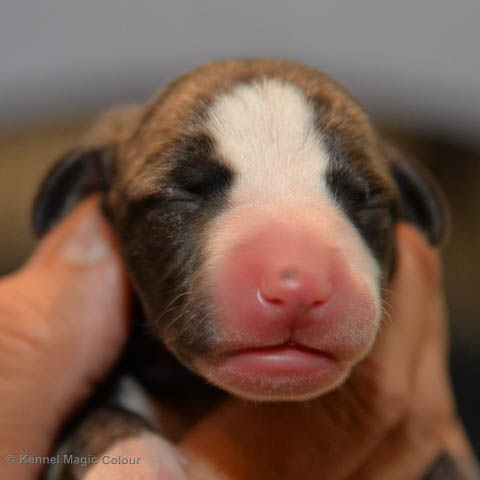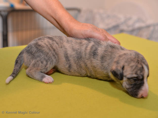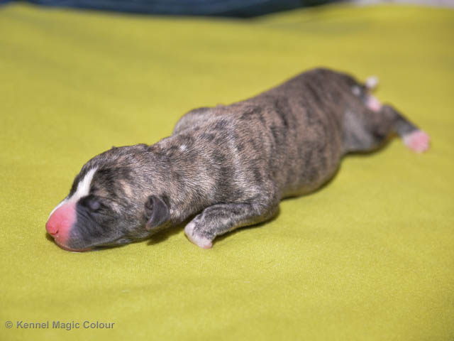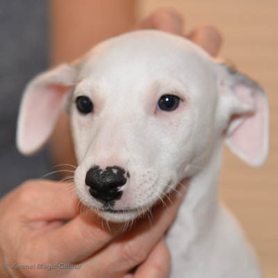 2019-01-07 Valparna 3 veckor gamla Nu händer det saker. Valparna börjar se ut som små whippetar. Under veckan som har gått, har valparna blivit avmaskat för första gången. Alla har nu öppnat sina ögon och de kan höra. De är uppe på sina ben och har bytt ut valplådan mot en stor biabädd, så dem kan gå ut korgen själv. Valparna har börjat bita i och leka med varandra. Valparna är också mycket intresserade i mammas mat och har fått smaka på den, vilket Chanel inte är så förtjust i. Chanel är en fantastisk mamma, som verkligen älskar sina små barn och passar dem till punkt och pricka. Chanel tillåter numera de andra hundarna att komma in i valphagen och dörren är öppen hela tiden. Är så imponerat av alla valparna, som alla kunna stå hyfsat fint på uppställningsbilderna - endast tre veckor gamla. Med andra ord nu är valparna livsfarlig söta. Magic Colour North Sail (Kenzo) Magic Colour Latin Sail (Josh) Magic Colour Sail For Gold (Kirin) Magic Colour White Sail (Kenny) Magic Colour Sail By The Stars (Pippi) Magic Colour Blond Sail (Bella)