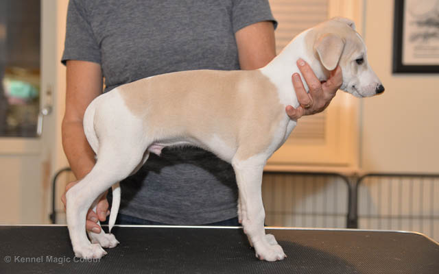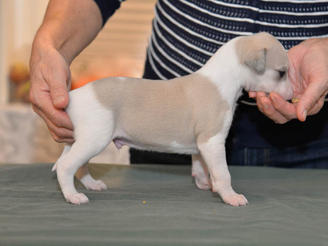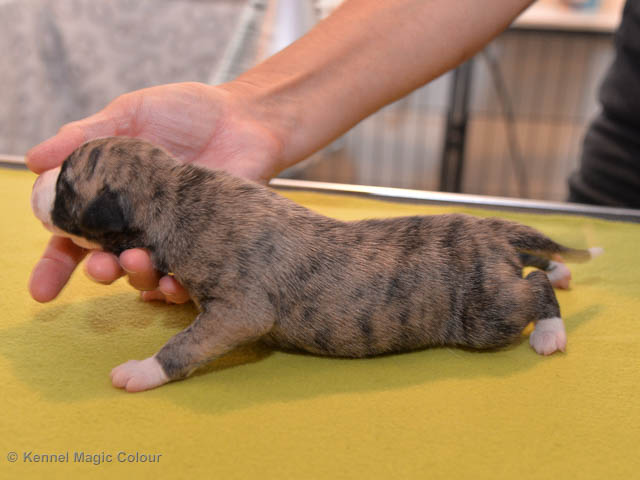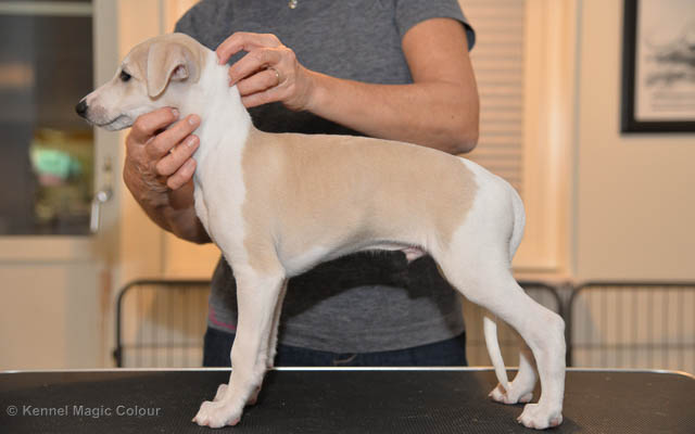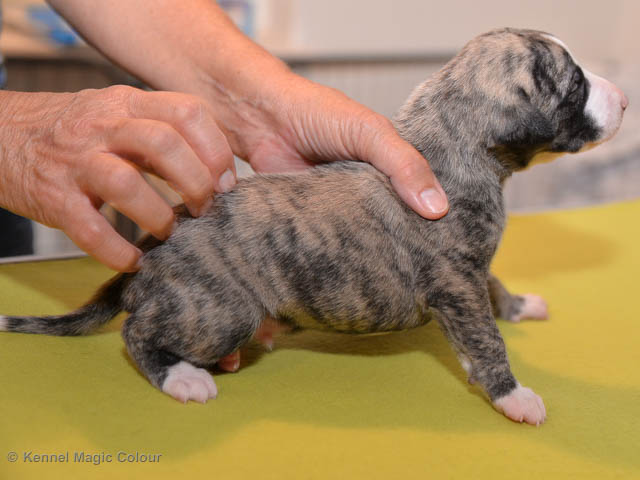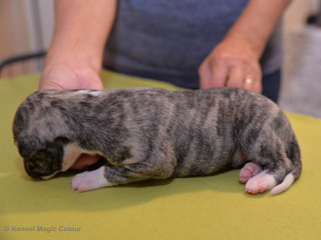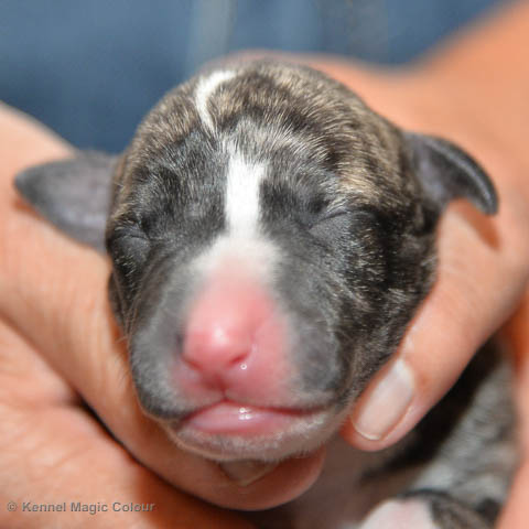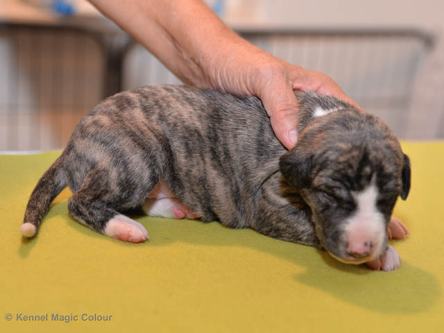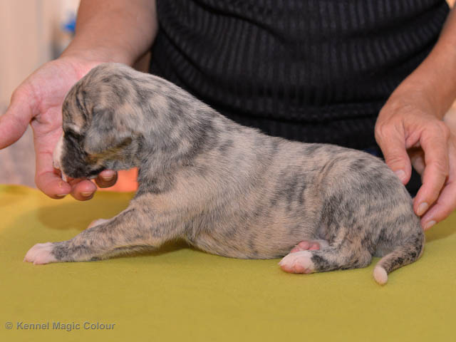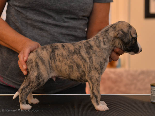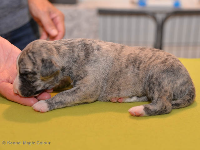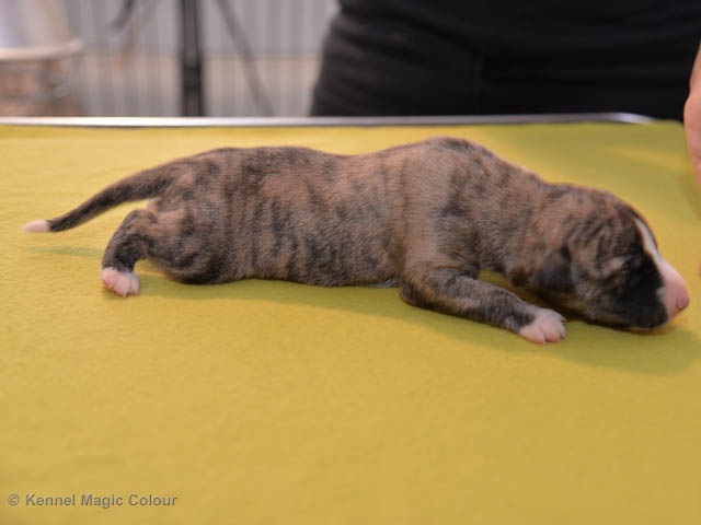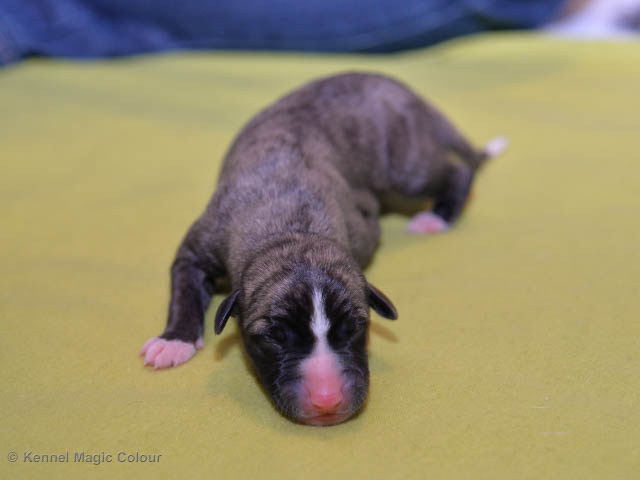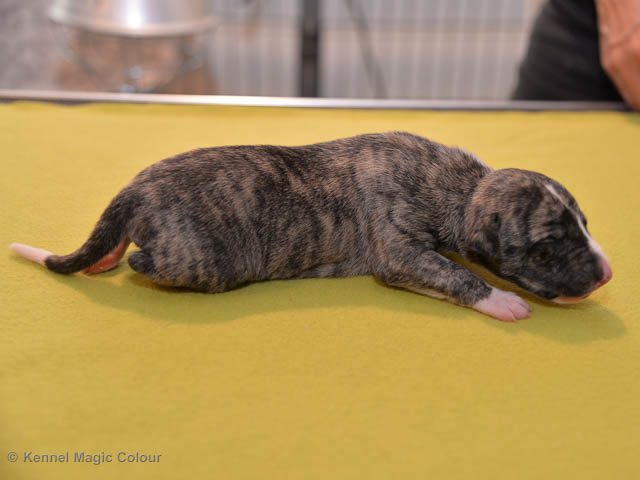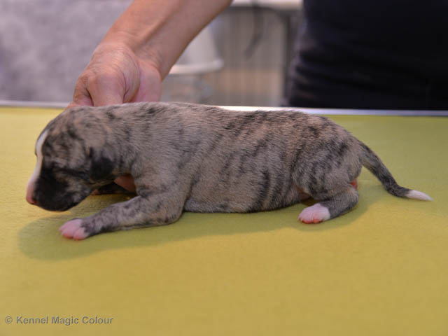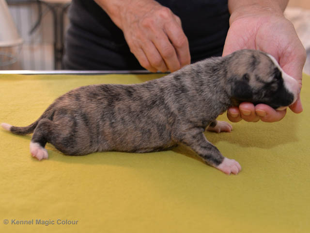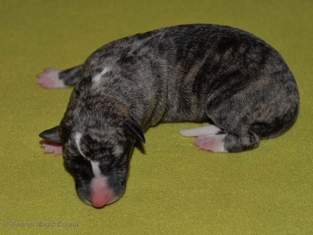 2019-01-07 Valparna 3 veckor gamla Nu händer det saker. Valparna börjar se ut som små whippetar. Under veckan som har gått, har valparna blivit avmaskat för första gången. Alla har nu öppnat sina ögon och de kan höra. De är uppe på sina ben och har bytt ut valplådan mot en stor biabädd, så dem kan gå ut korgen själv. Valparna har börjat bita i och leka med varandra. Valparna är också mycket intresserade i mammas mat och har fått smaka på den, vilket Chanel inte är så förtjust i. Chanel är en fantastisk mamma, som verkligen älskar sina små barn och passar dem till punkt och pricka. Chanel tillåter numera de andra hundarna att komma in i valphagen och dörren är öppen hela tiden. Är så imponerat av alla valparna, som alla kunna stå hyfsat fint på uppställningsbilderna - endast tre veckor gamla. Med andra ord nu är valparna livsfarlig söta. Magic Colour North Sail (Kenzo) Magic Colour Latin Sail (Josh) Magic Colour Sail For Gold (Kirin) Magic Colour White Sail (Kenny) Magic Colour Sail By The Stars (Pippi) Magic Colour Blond Sail (Bella)