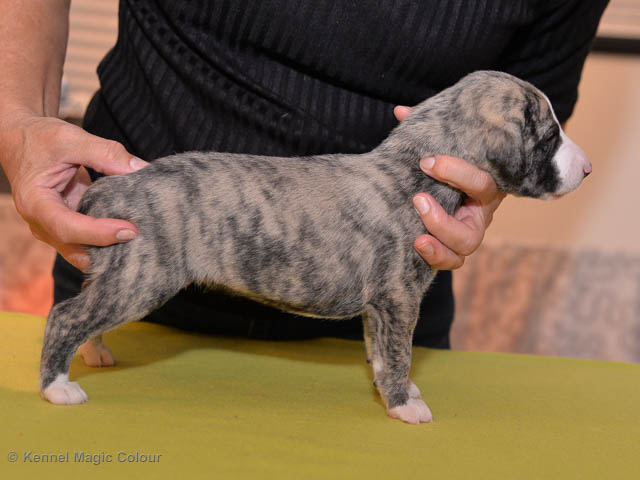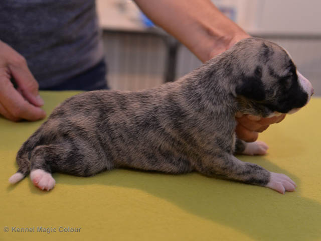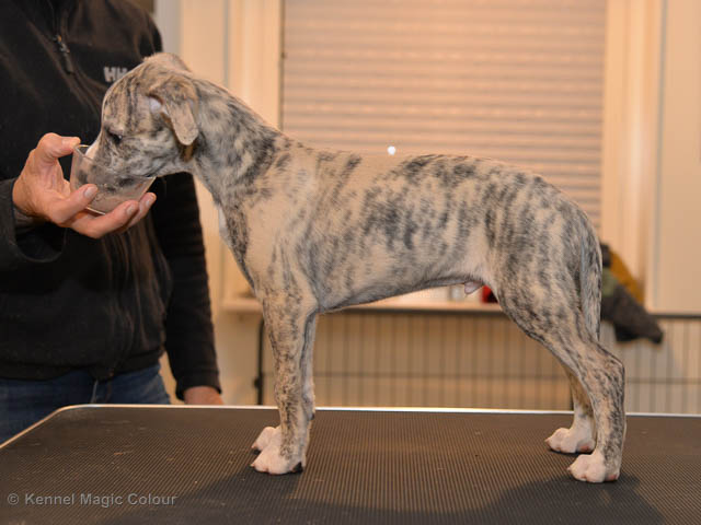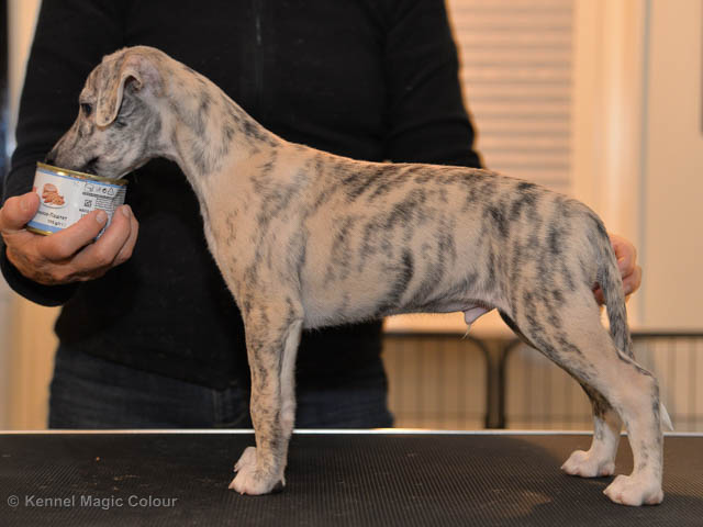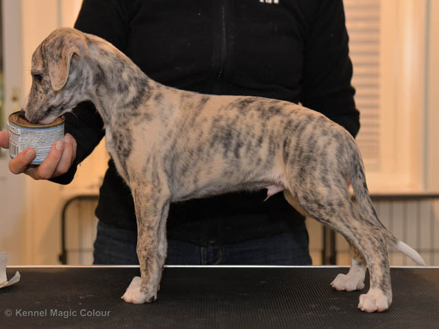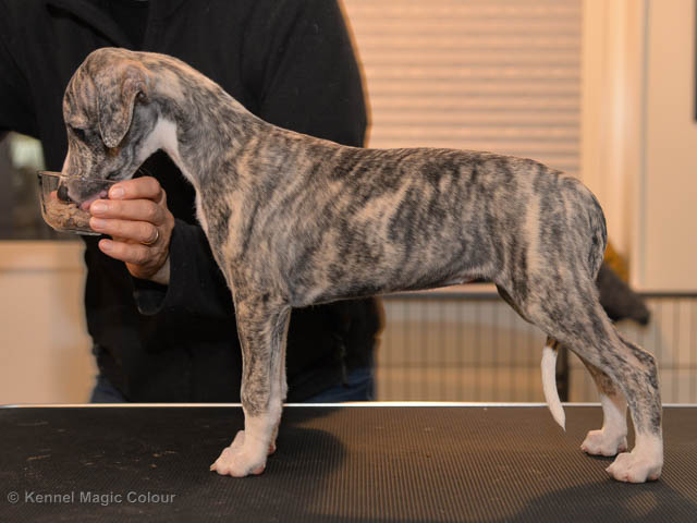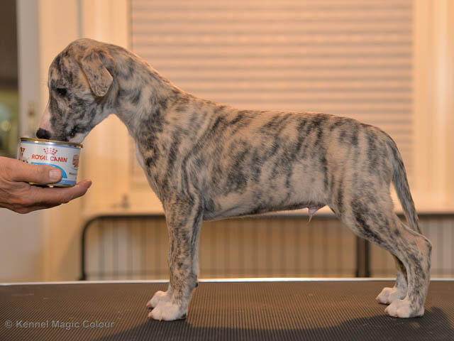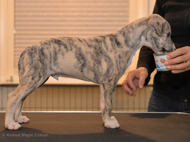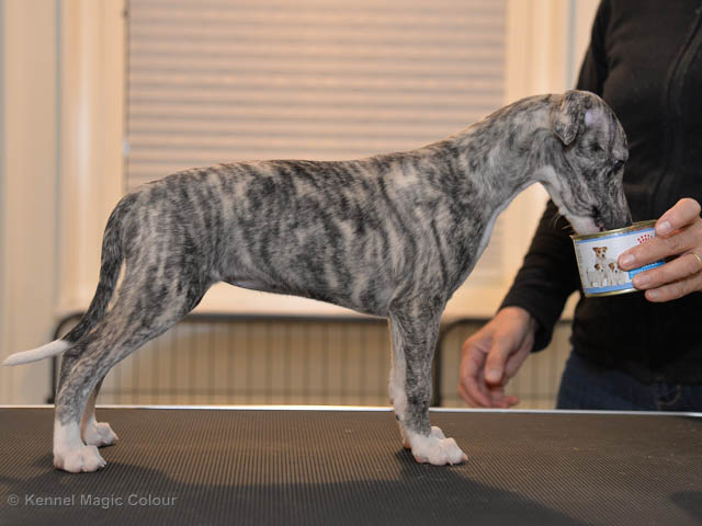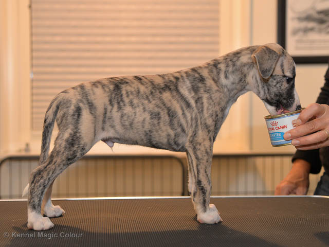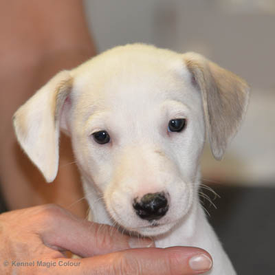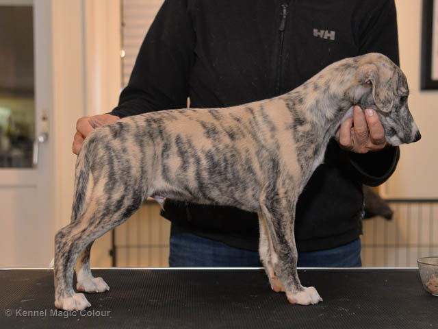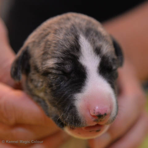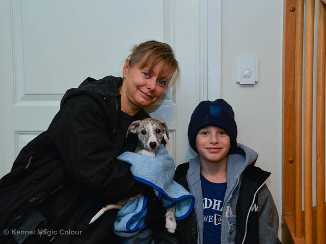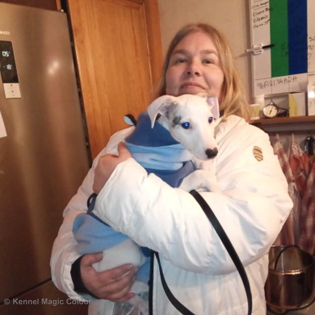 2019-02-16 Sista valpen flyttar Så var det dags för sista valpen Kenzo – Magic Colour North Sail att flytta hem till Allan och hundkompisarna Joy, Billie och Boss i Danmark. Vi önskar Allan lycka till med lilla fina Kenzo, som nästan fick en vecka till med mamma och resten av flocken. Magic Colour North Sail (Kenzo)