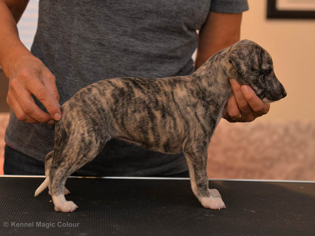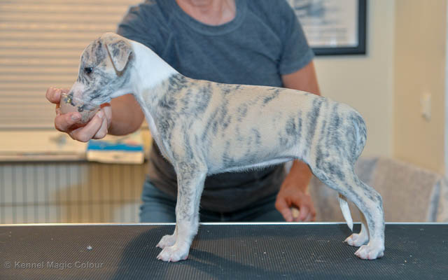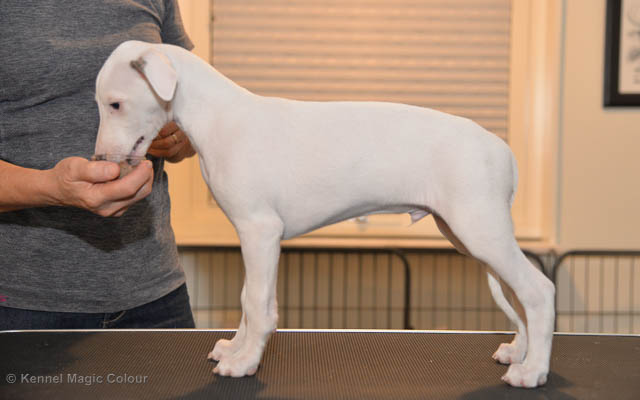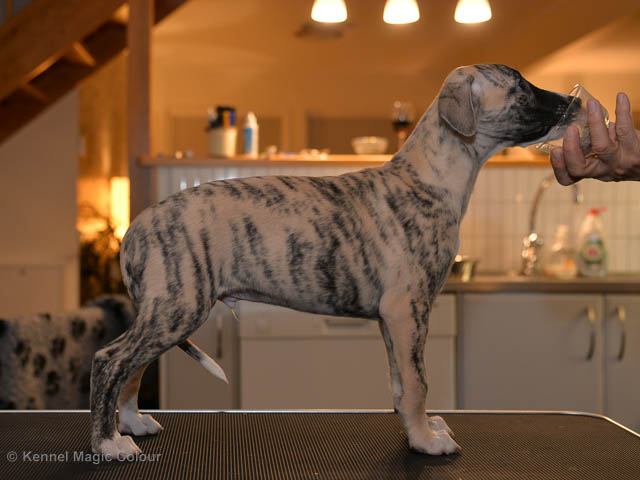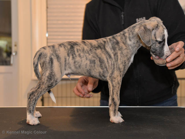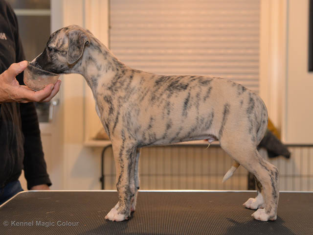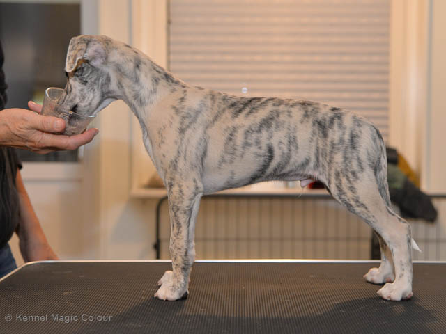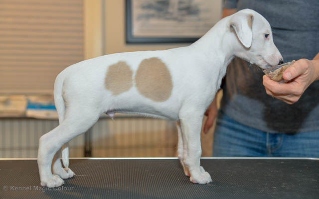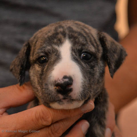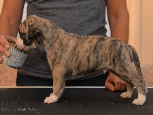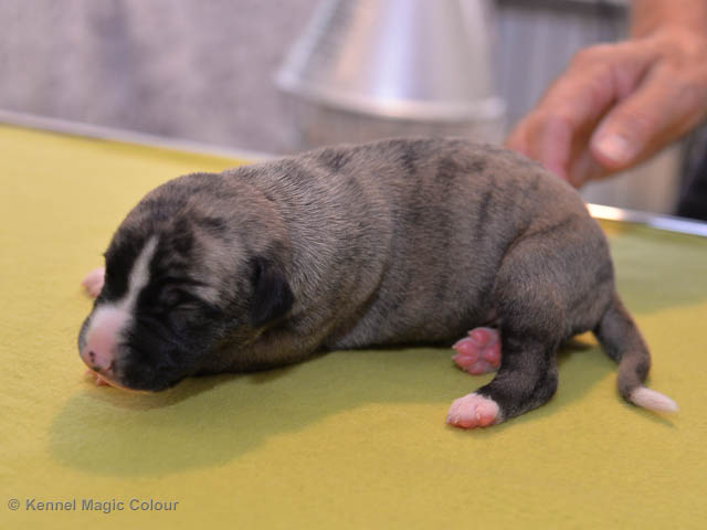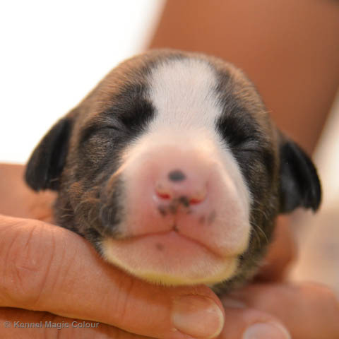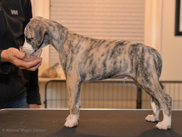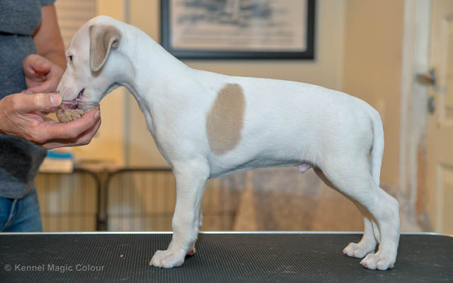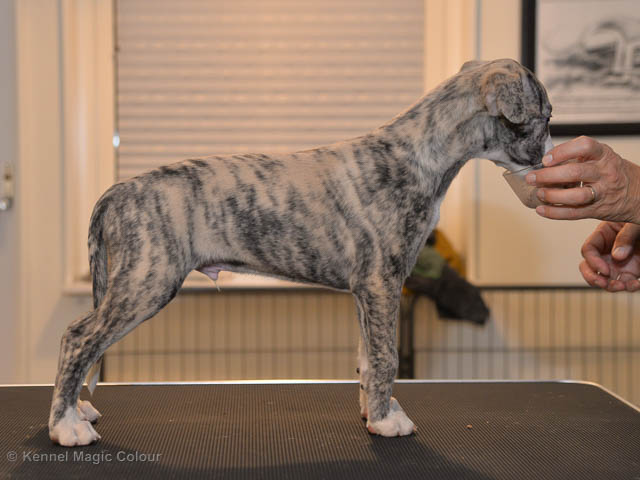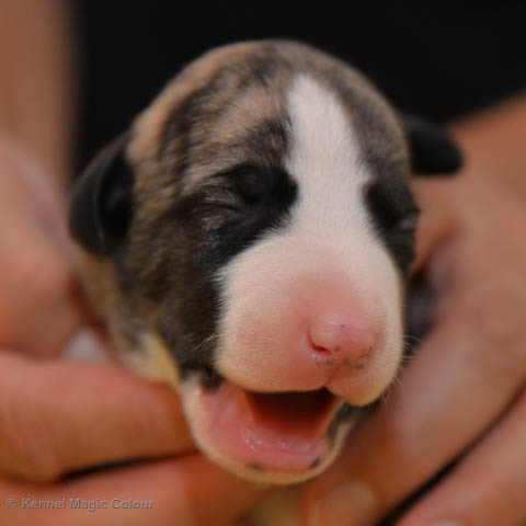2019-02-16 Sista valpen flyttar Så var det dags för sista valpen Kenzo – Magic Colour North Sail att flytta hem till Allan och hundkompisarna Joy, Billie och Boss i Danmark. Vi önskar Allan lycka till med lilla fina Kenzo, som nästan fick en vecka till med mamma och resten av flocken. Magic Colour North Sail (Kenzo)
