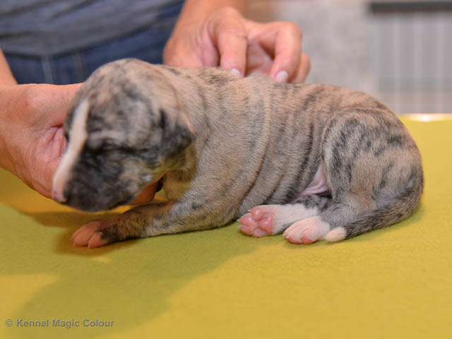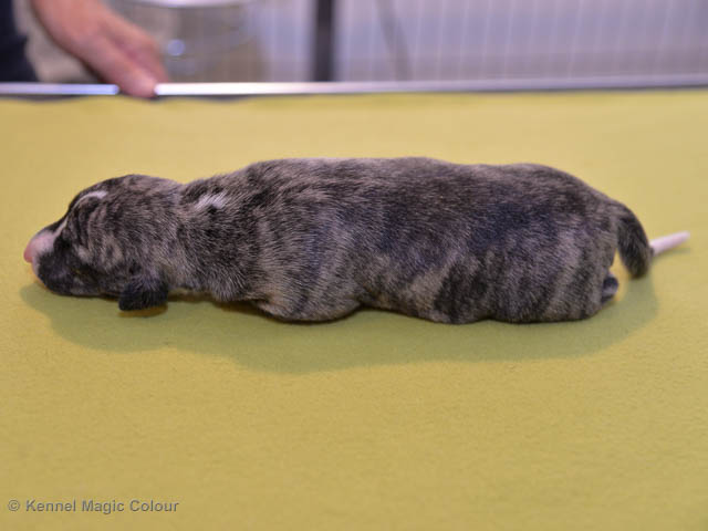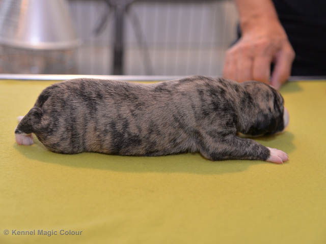 2019-09-24 Valparna 2 veckor gamla Granite & Sös valpar är nu två veckor gamla och mycket har hänt den senaste veckan. I helgen var hela cirkusen i Småland. Allt gick bra och valparna och Sös var helt opåverkade. Alla växer och utvecklas som de ska. Valparna har börjat öppna sina ögon olika mycket och börjar nu bli livsfarliga söta. De har börjat ge ljud ifrån och bita på mamma och varandra. De försöker också att vandra runt i valpkorgen. De var mycket aktiva då vi skulle fota. Klorna klippta för andra gången och så har de fått smaka på avmaskning, vilket inte var någon höjdare. Nästa spännande utveckling blir när valparna också kan höra. Magic Colour Sea Star Deep Love (Kosmo) Magic Colour Sea Star Dreamer (Harry) Magic Colour Sea Star High Noon (Elliot) Magic Colour Sea Star Jet Skye (Lotus) Magic Colour Sea Star Moody Blues (Hugo) Magic Colour Sea Star No Regrets (Floyd) Magic Colour Sea Star On The Line (Moltas) Magic Colour Sea Star So Sweet (Java)
