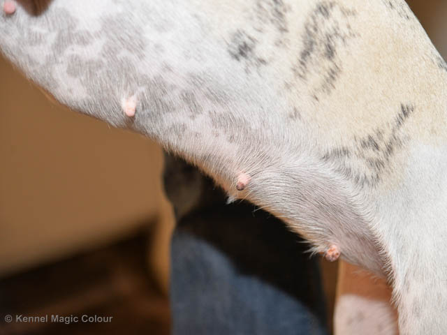 2019-11-17 Chanel 2 veckor efter parning Det syns förstås ingenting, men de små tecken vi kan se pekar alla i rätt riktning: vi tycker magen har ändrat sig lite, spenarna har blivit större och svullnaden är kvar. Om en vecka är vi nog ännu mer säkra.