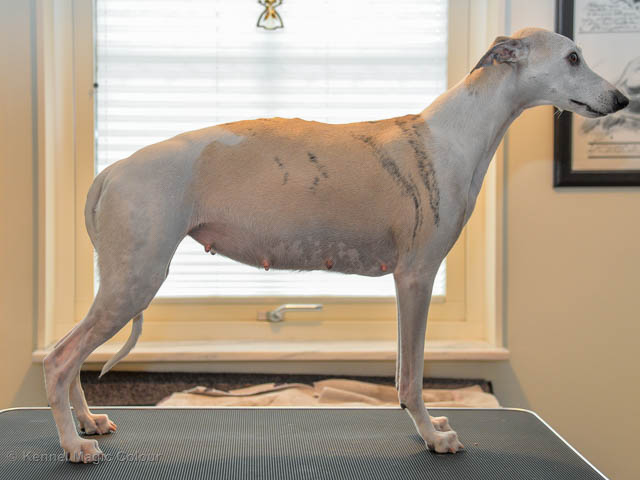 2019-12-15 Chanel 6 veckor efter parning A lot has happened with Chanel in the last week. She has regained her appetite and often asks for food. Chanel has gained 1.1 kg during the week. There is no longer any doubt that Chanel is pregnant, now you can clearly see a sweet belly. Chanel is doing well and still keeps up with all the walks.